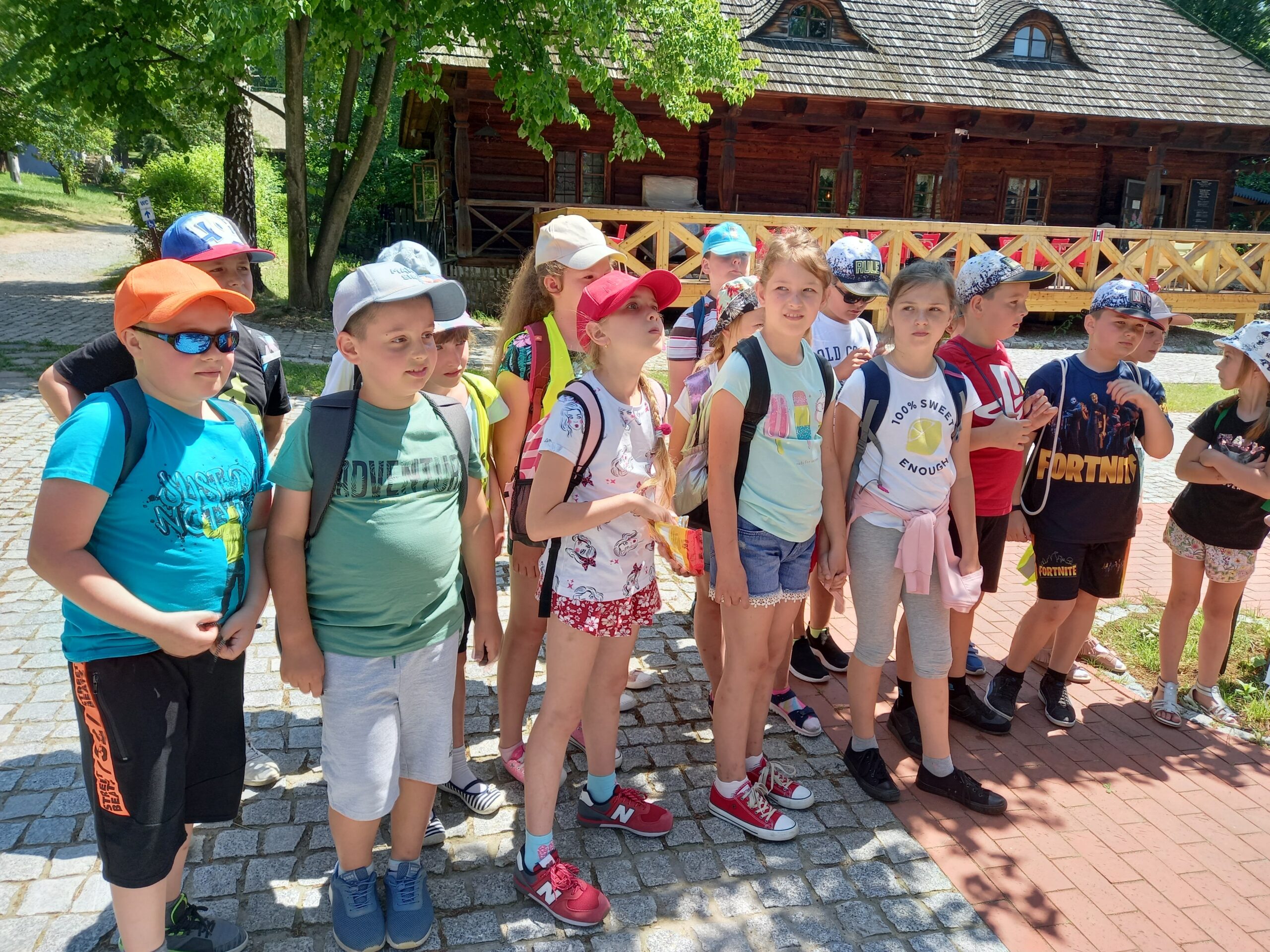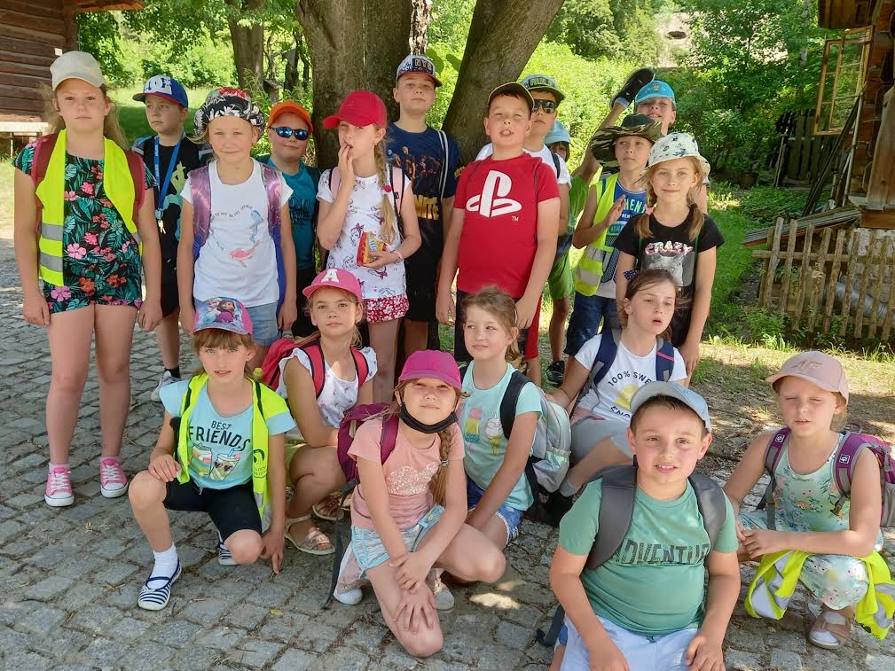 W czwartek, 17 czerwca klasy drugie wraz z wychowawcami wybrały się na wycieczkę do skansenu w Wygiełzowie. Był piękny, słoneczny dzień. Wśród malowniczego terenu zwiedzaliśmy: dwór, zagrody chłopskie z sadami i przydomowymi ogródkami, obiekty związane z wiejską produkcją rzemieślniczą, kościół z dzwonnicą, zespół małomiasteczkowy i inne przykłady architektury wsi nadwiślańskiej. Wszyscy brali udział w ciekawych warsztatach w trakcie których zdobyli wiadomości na temat tradycyjnej krakowskiej biżuterii oraz jej symboliki. Dowiedzieli się jaką wartość miały prawdziwe korale oraz jak dawniej tworzono ich imitacje. Dzieci malowały paciorki i komponowały korale. Własnoręcznie wykonane prace są wspaniałą pamiątką. Zmęczeni, ale pełni wrażeń z uśmiechami na twarzy wróciliśmy późnym popołudniem.