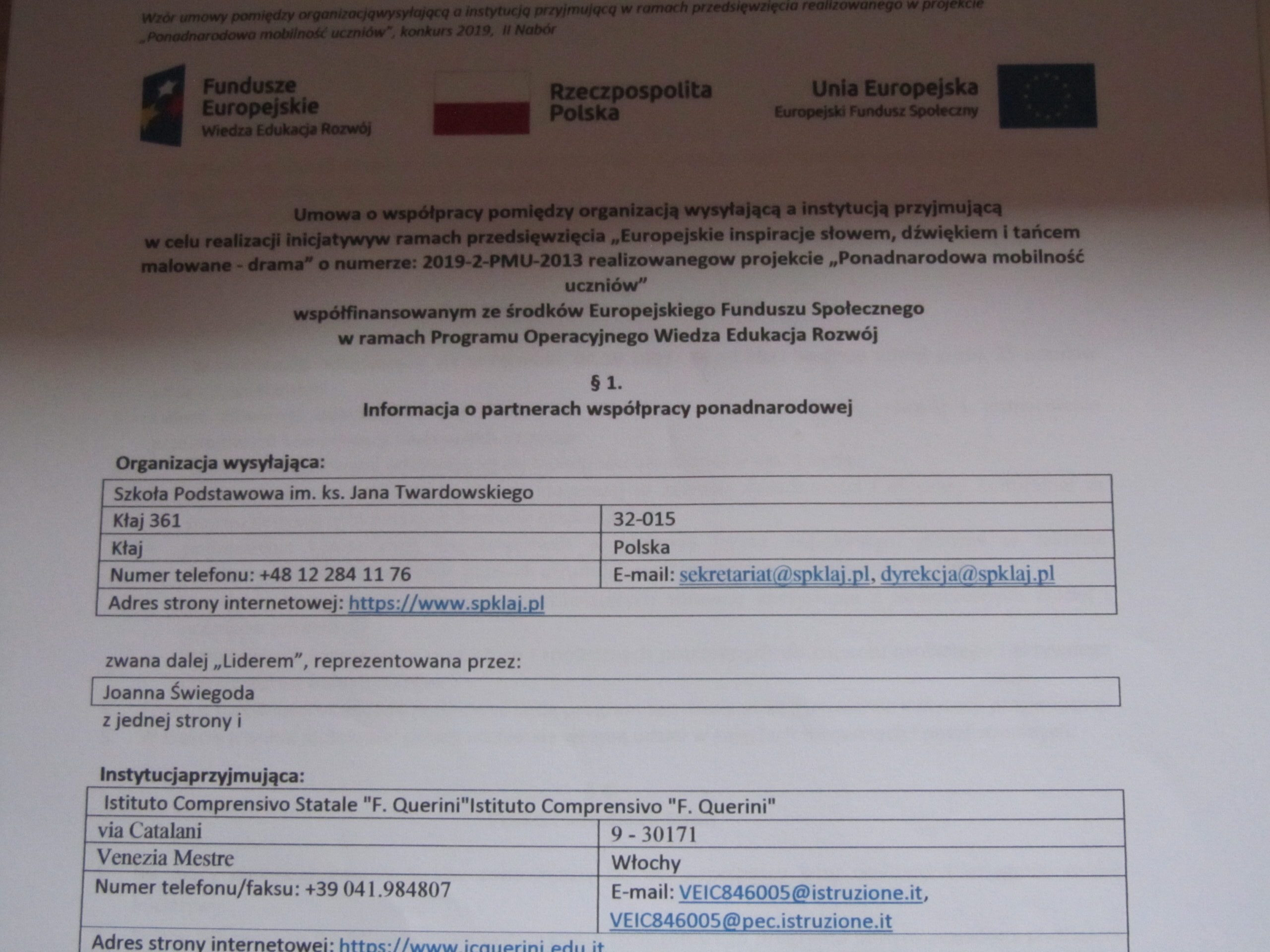 W dniach 15 – 17 września 2021 roku odbyła się wizyta przygotowawcza w ramach projektu PO WER „Ponadnarodowa mobilność uczniów”. Naszą szkołę reprezentowały panie Monika Imos i Iwona Nowak. Celem tej wizyty było podpisanie umowy partnerskiej ze szkołą Istituto Comprensivo Statale “F. Querini”Istituto Comprensivo “F. Querini” w Wenecji we Włoszech, która wkrótce będzie gościła naszych uczniów. Podczas wizyty zostały omówione szczegóły dotyczące programu pobytu grupy uczniów we Włoszech w terminie od 4 do 8 października. Ustalone zostały także kwestie organizacyjne: miejsce zakwaterowania i wyżywienie uczestników mobilności. Wszystkie spotkania odbywały się w serdecznej i pełnej życzliwości atmosferze, a nasi uczniowie z niecierpliwością czekają na zbliżający się wyjazd.