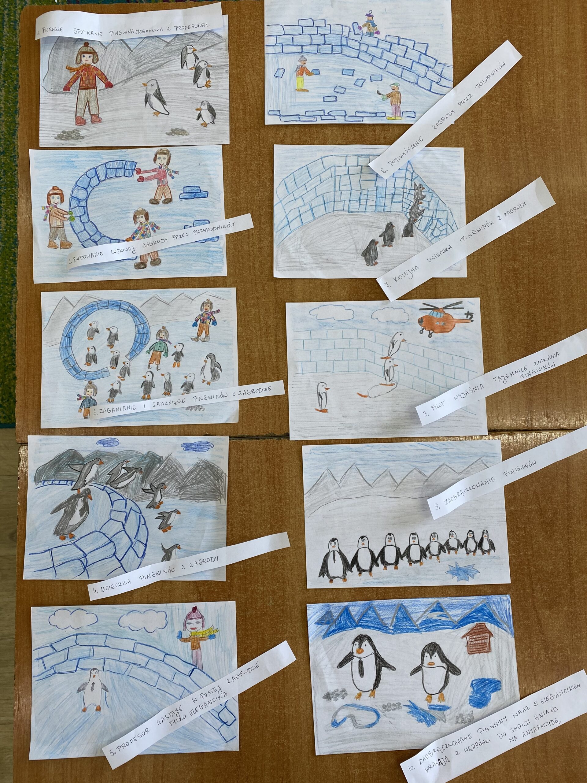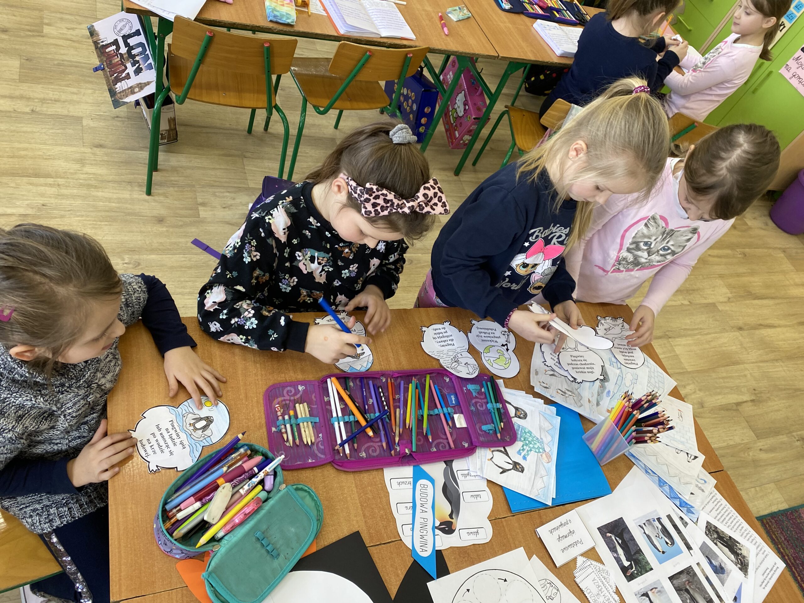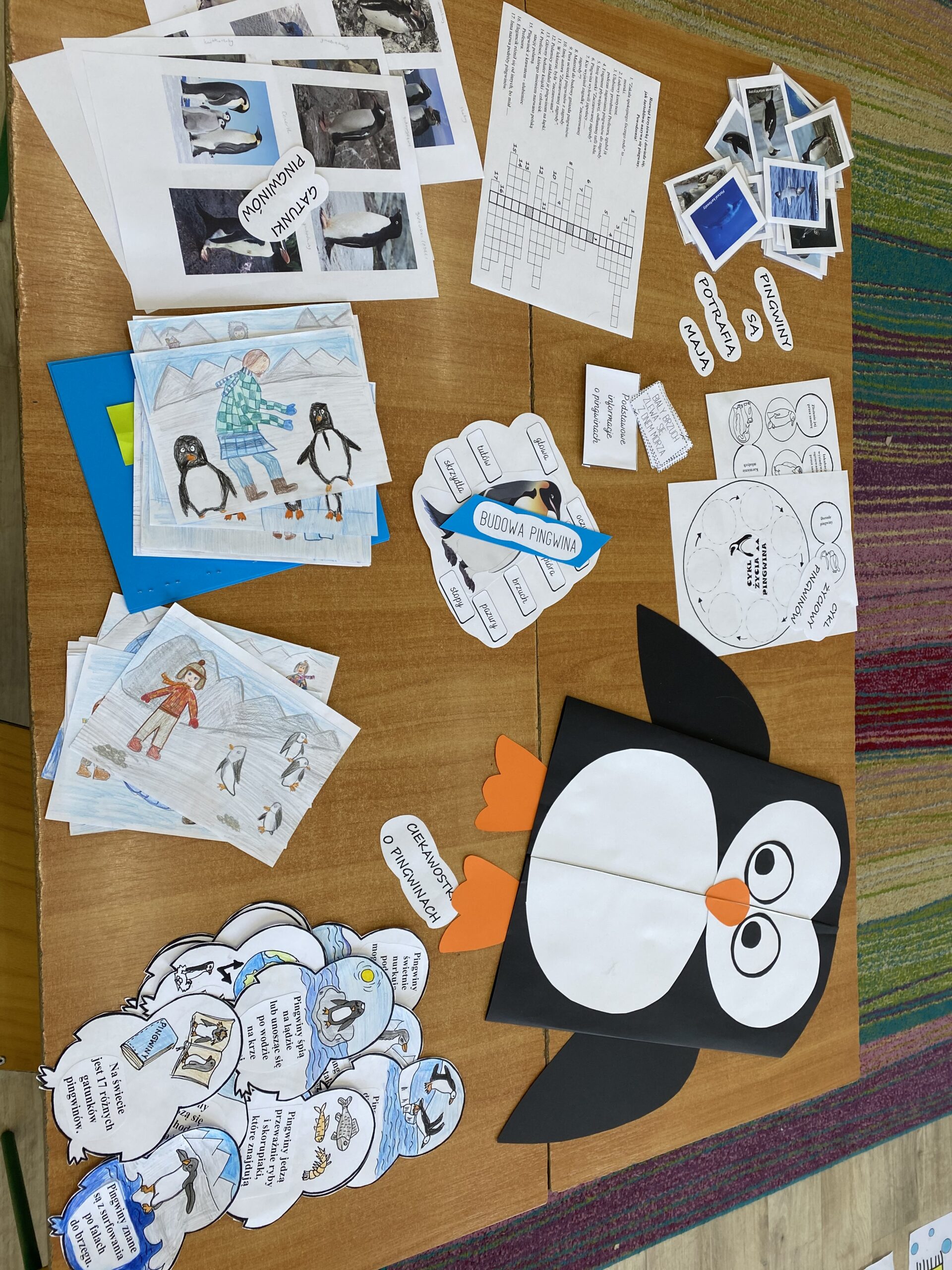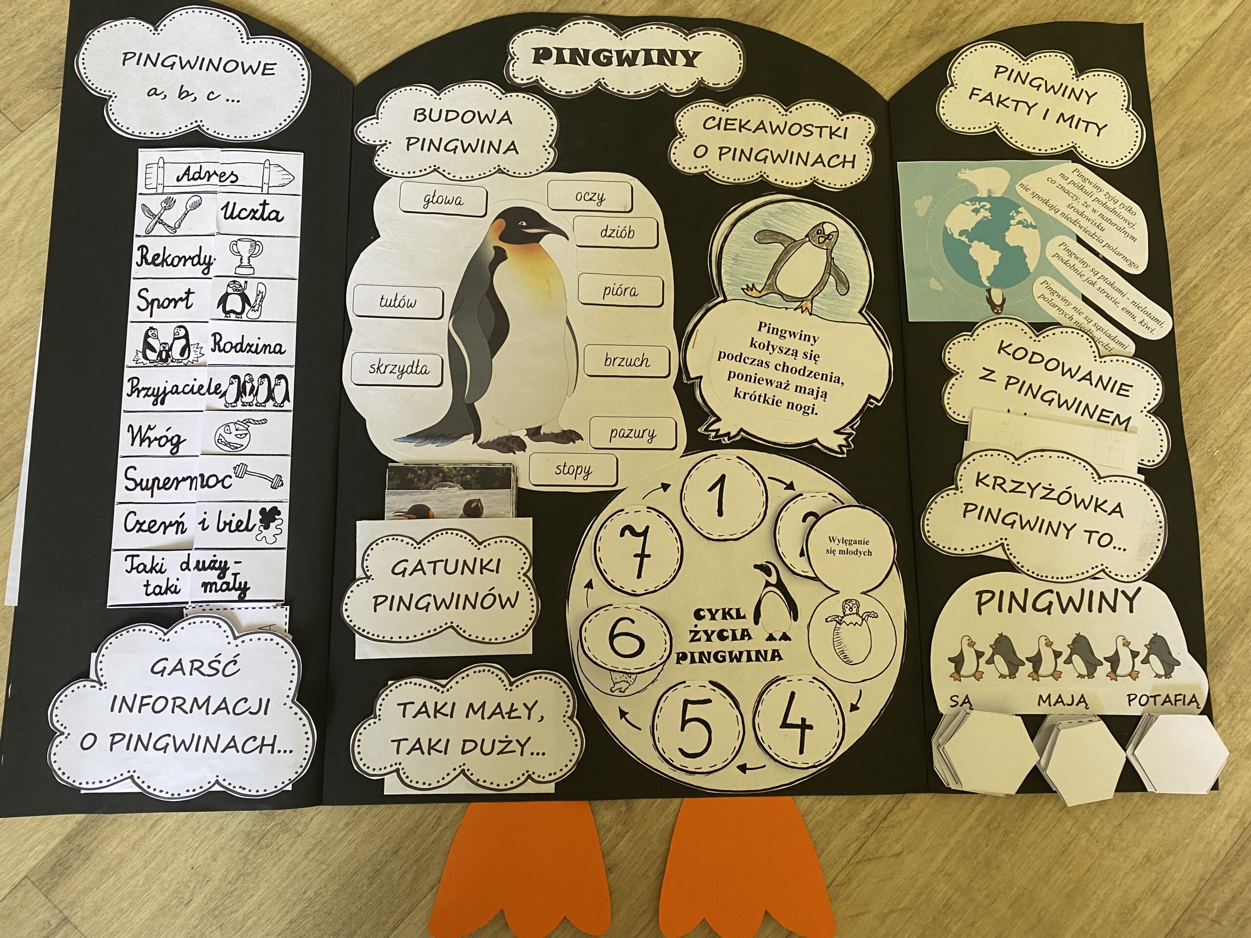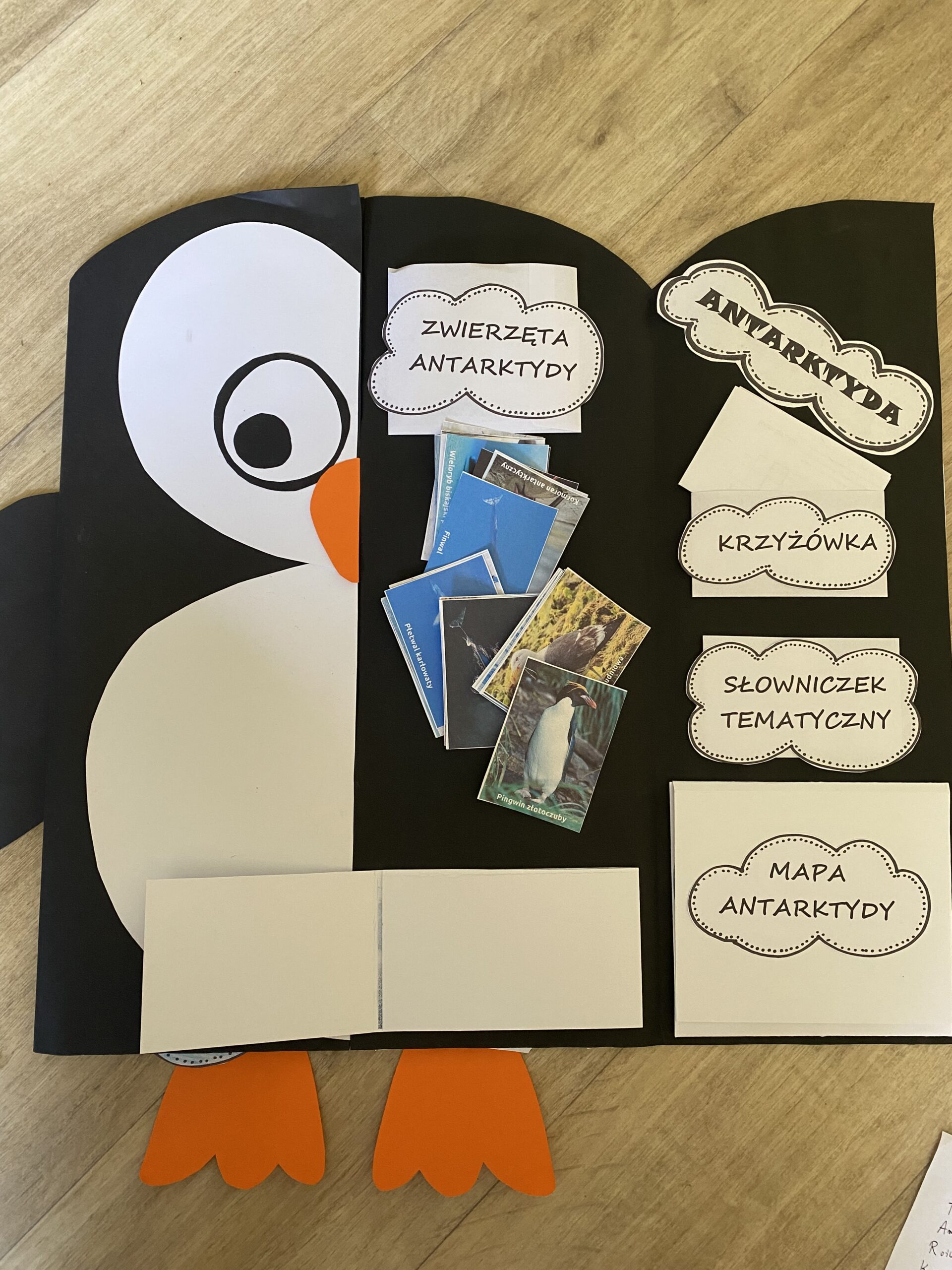 W naszych Lapbookach pojawiły się najważniejsze informacje dotyczące życia i funkcjonowania pingwinów oraz kontynentu jakim jest Antarktyda oraz informacje dotyczące lektury i jej autorów.