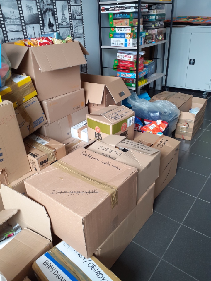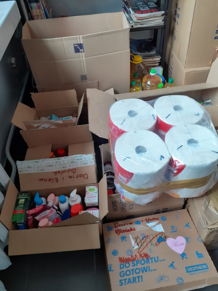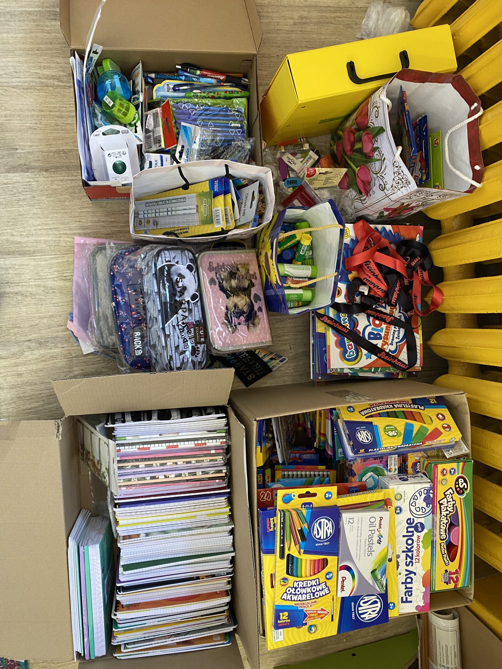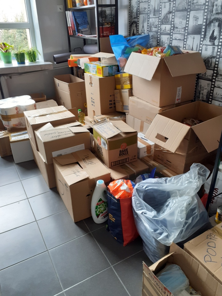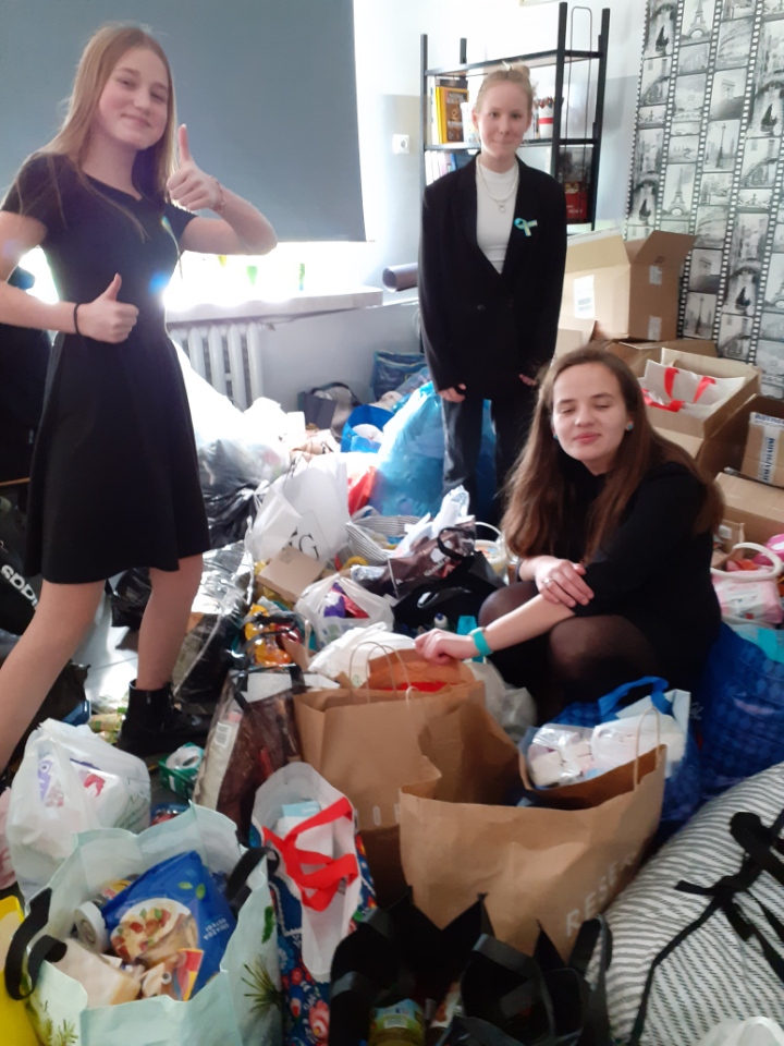 - Z inicjatywy Samorządu Uczniowskiego odbyła się w całej szkole zbiórka artykułów spożywczych, środków czystości, higieny osobistej, pampersów, kremów, szamponów, past i szczoteczek do zębów, chusteczek higienicznych, nawilżających, ręczników papierowych, lekarstw, środków opatrunkowych, kocy, śpiworów, karimat, pluszaków oraz ubrań. W sumie uzbierało się 50 pudeł – część przekazano na Ukrainę, część obywatelom Ukrainy przebywającym w Polsce.