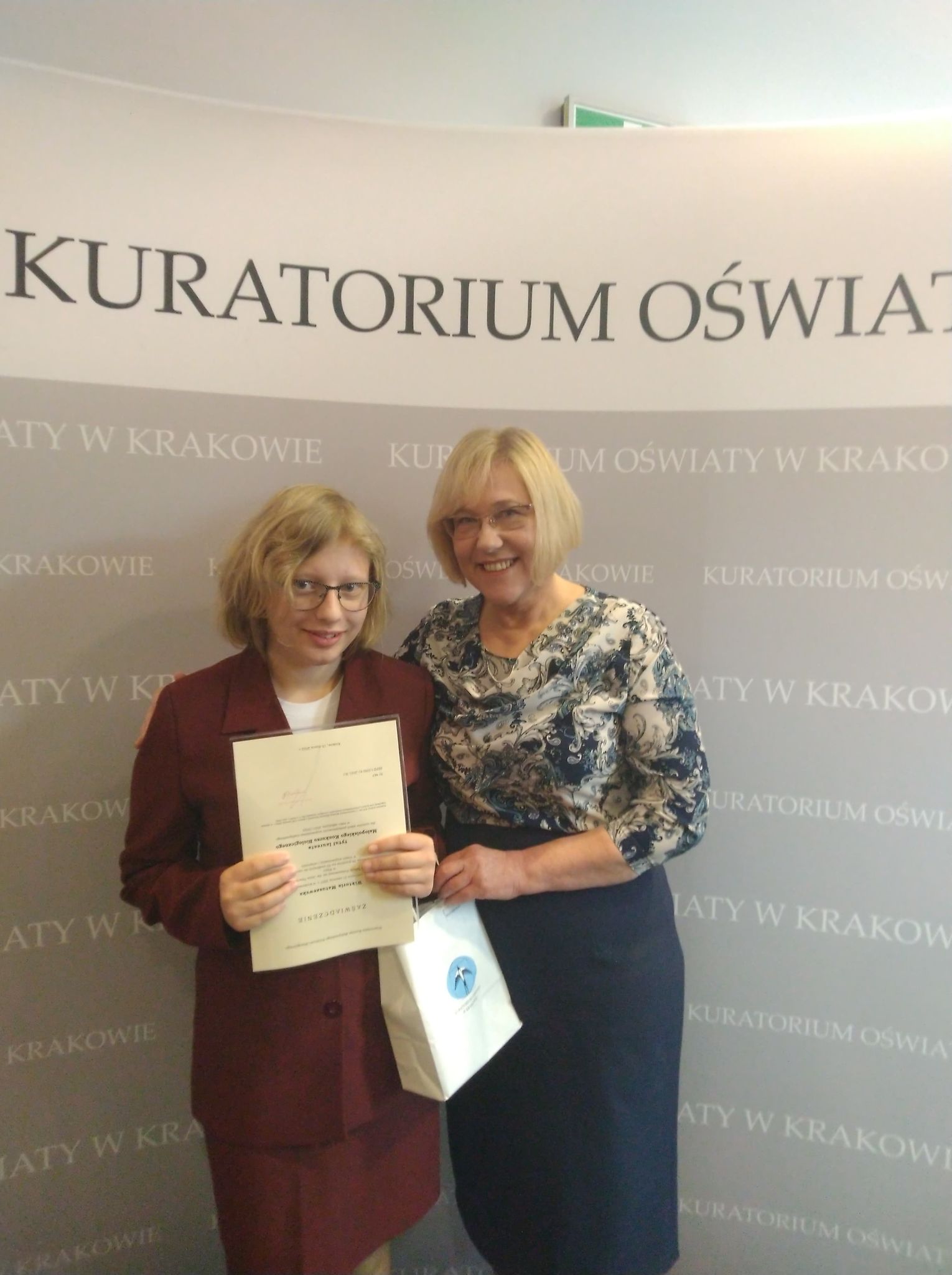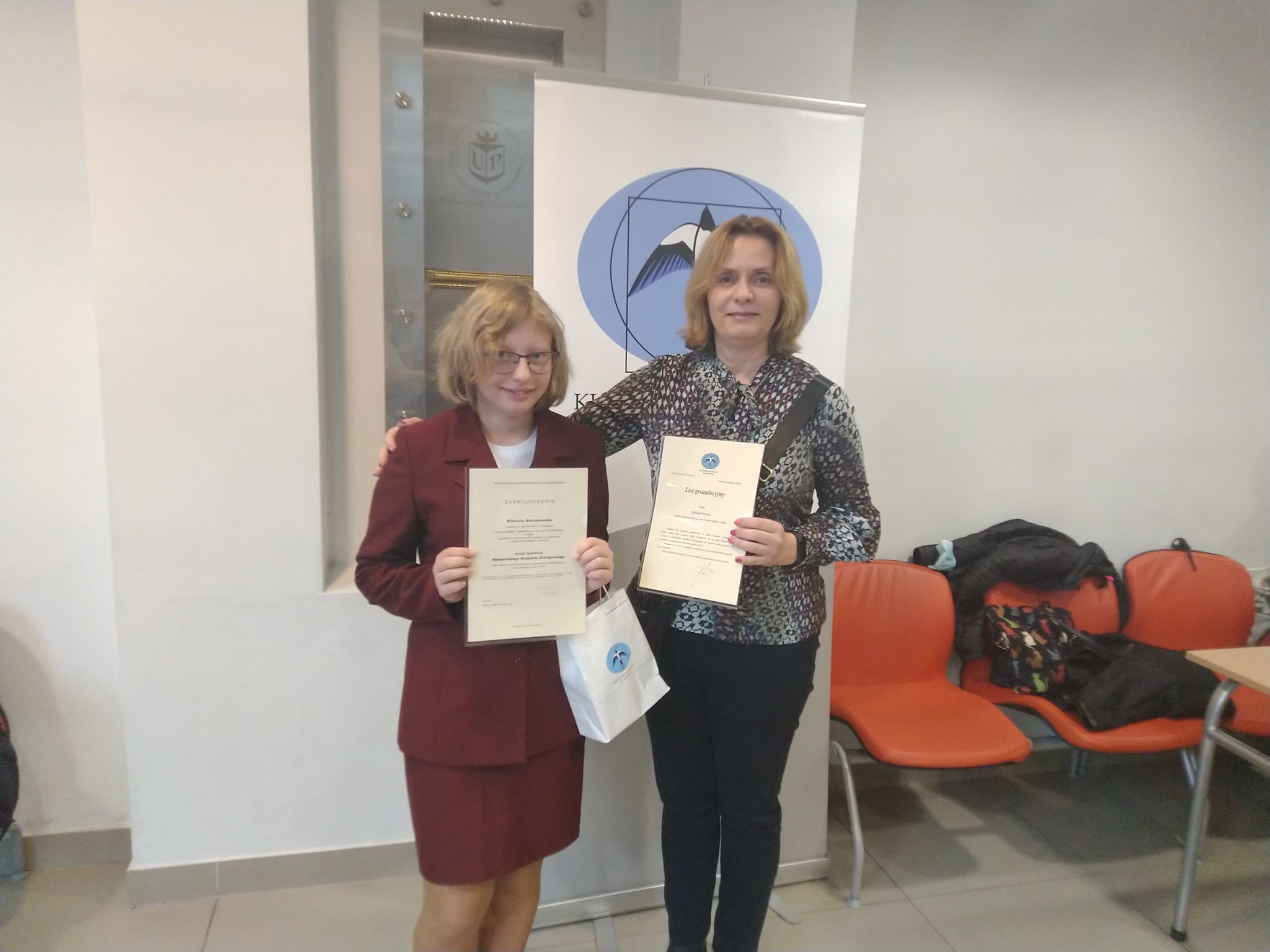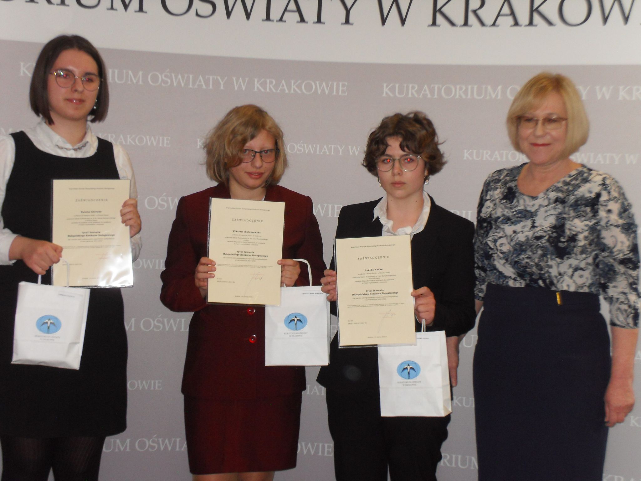 26 kwietnia uczennica klasy VIII b – Wiktoria Matuszewska odebrała z rąk Małopolskiego Kuratora Oświaty – Pani Barbary Nowak zaświadczenie Laureata Małopolskiego Konkursu Biologicznego dla uczniów szkół podstawowych. Uroczystość ta miała miejsce w auli Uniwersytetu Pedagogicznego w Krakowie. Wiktoria zajęła III miejsce w województwie małopolskim uzyskując 56 punktów na 60 możliwych do zdobycia. Jeszcze raz serdecznie gratulujemy i życzymy sukcesów w dalszej edukacji!