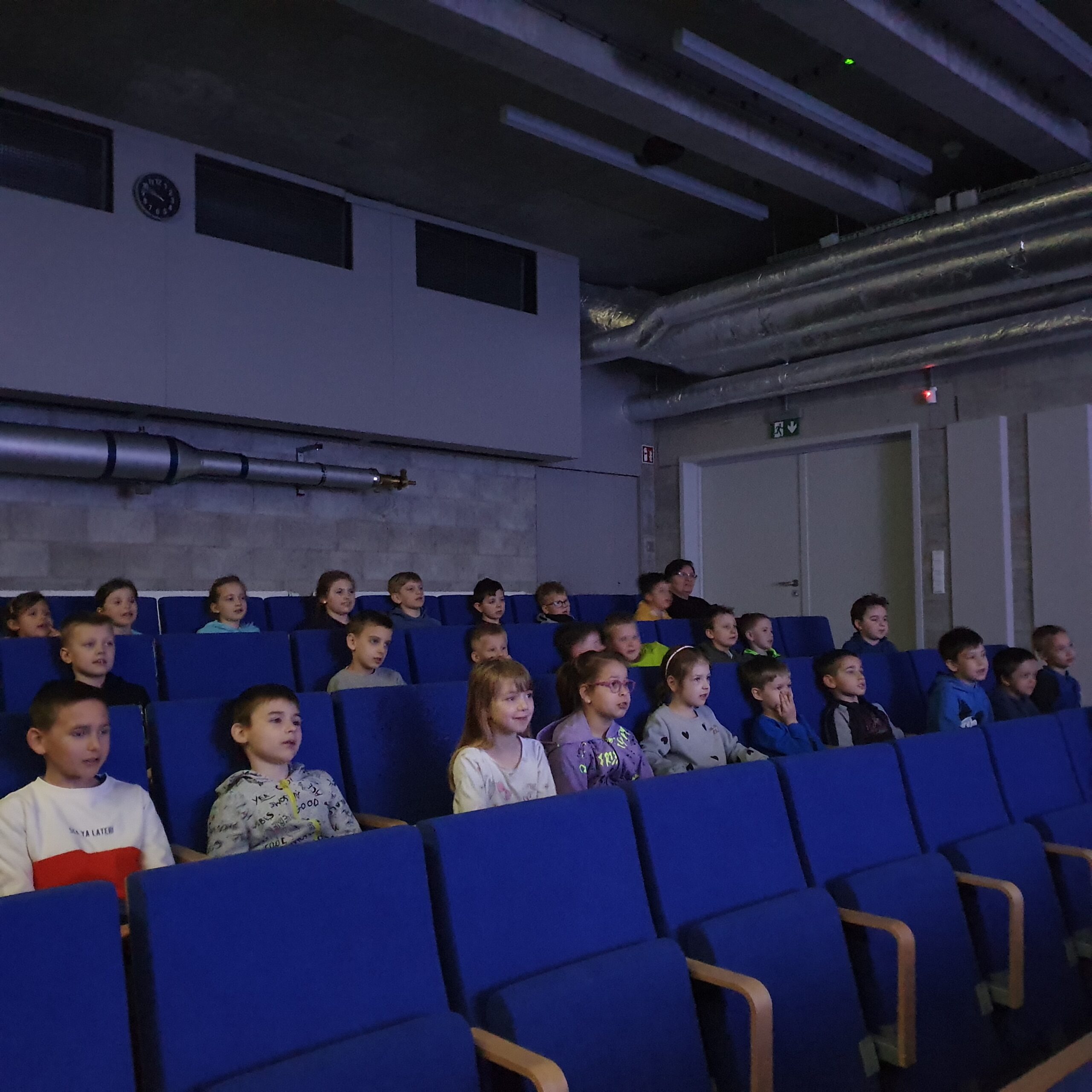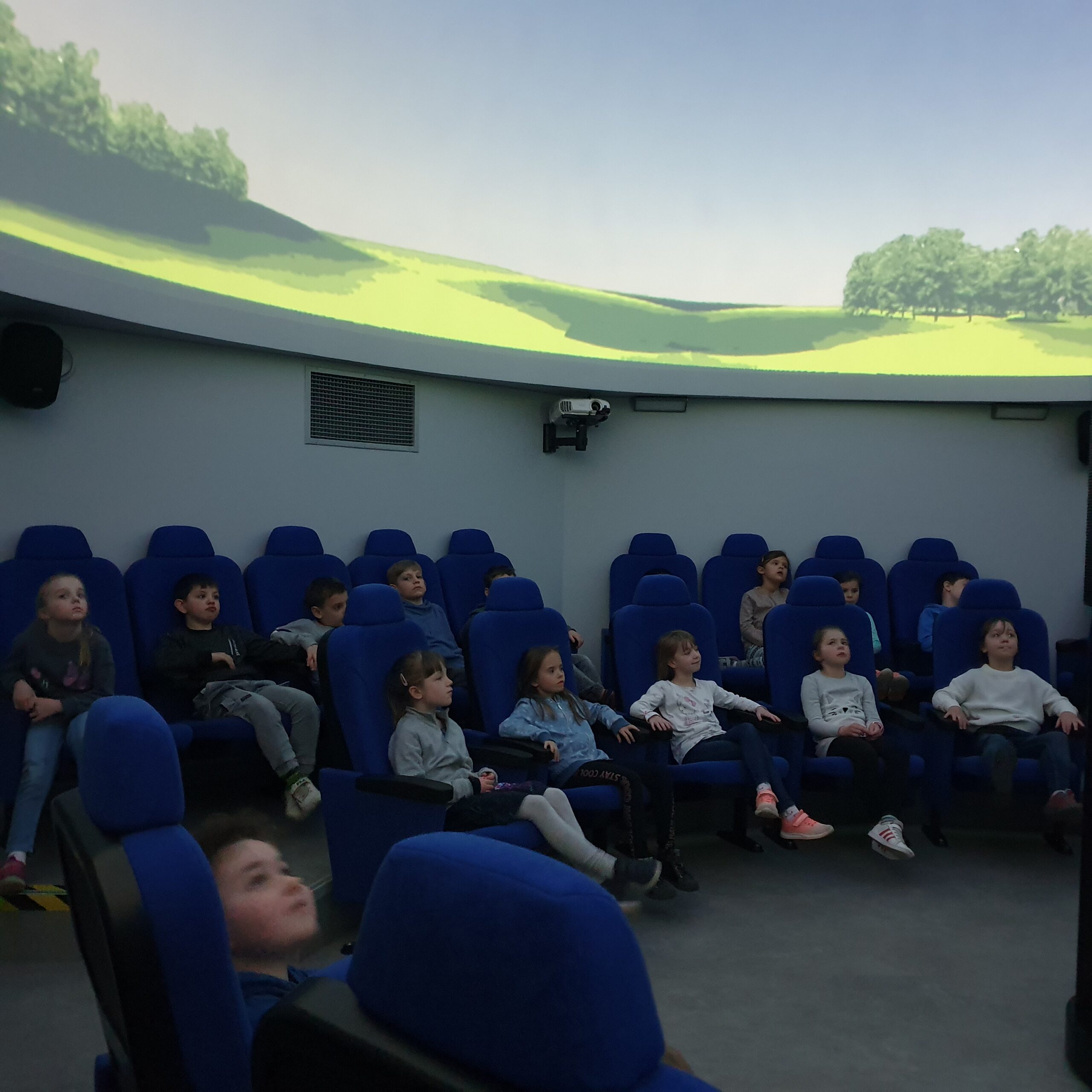 Pierwszoklasiści uczestniczyli również w niezwykłym seansie w Planetarium, oglądając zjawiska astronomiczne związane z wyglądem nieba w różnych szerokościach geograficznych, ruchem planet i Słońca, fazami Księżyca oraz ruchem obrotowym Ziemi.