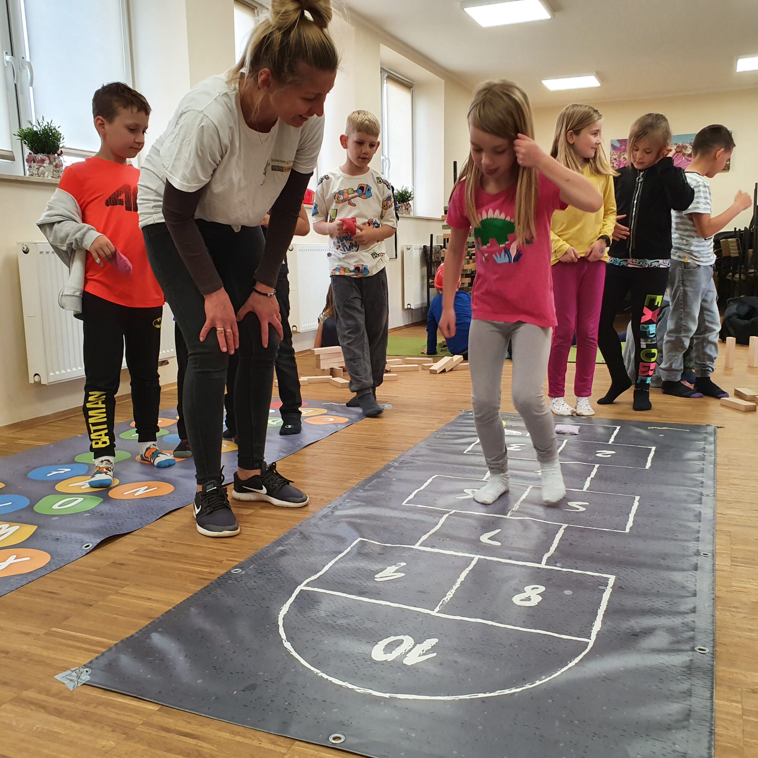 24 maja br. uczniowie klas pierwszych uczestniczyli w zajęciach edukacyjno – sportowych pt. „Wielkoformatowe Gry XXL – duże słowo, duży rozmiar i dużo zabawy” zorganizowanych przez Gminne Centrum Kultury w Kłaju. Pierwszoklasiści zostali zaproszeni do Wielkoformatowej Strefy Gier Edukacyjnych do Domu Kultury w Łysokaniach. Uczniowie mieli możliwość zagrania w gry w rozmiarze XXL, takie jak: Eko gry planszowe – ,,Poznaj Kosmos”, ,,ActivMatma”, ,,Bezpieczni nad wodą”, gry korytarzowe i podłogowe – ,,Klasy”, ,,Stópki”, ,,Alfabet”, ,,Kalkulator”, gry zręcznościowe – ,,Jenga”, ,,Domino”, gry plenerowe, podwórkowe i ogrodowe. Warsztaty były prowadzone przez Mistrzów Gier Edukacyjnych „KumamGre” i stanowiły atrakcyjną alternatywę dla zagospodarowania czasu przeznaczonego na naukę w ciekawej formie. Gry bazowały zarówno na indywidualnym działaniu, jak i na pracy zespołowej. Wszystko odbywało się w duchu zdrowej rywalizacji i zasad fair play. Podczas zajęć dzieci, m.in.: rozwijały wyobraźnię przestrzenną i kreatywność, ćwiczyły spostrzegawczość, pamięć, koncentrację, zręczność, doskonaliły umiejętność współpracy w zespole, utrwalały proekologiczne postawy, właściwe i bezpieczne zachowania oraz dobre praktyki i nawyki w życiu codziennym.