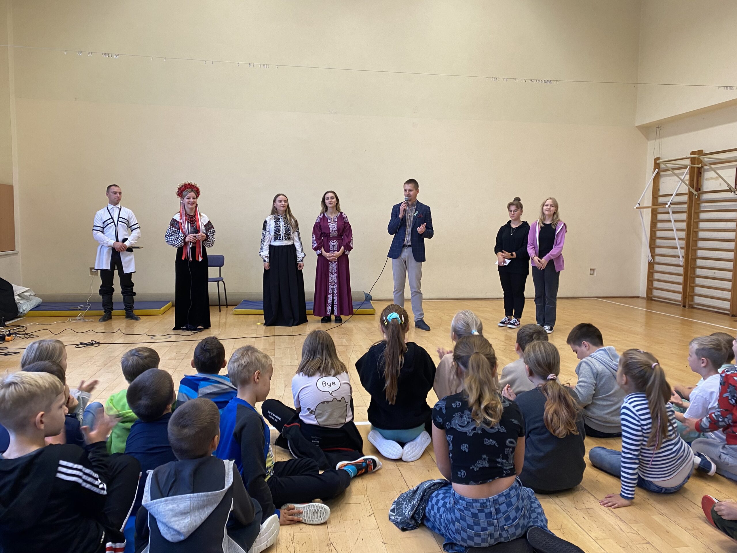 W murach naszej szkoły po raz kolejny gościł ze swoim koncertem ukraiński zespół tańca i pieśni “Zbrucz” z Tarnopola. Nazwa zespołu pochodzi od nazwy rzeki Zbrucz, która jest dopływem Dniestru w Zachodniej Ukrainie. Grupa artystów z Ukrainy zaprezentowała składankę tańców ukraińskich, cygańskich i gruzińskich. W przerwach soliści zespołu prezentowali utwory ukraińskiego folkloru ludowego. Występ stał na bardzo wysokim poziomie artystycznym. Profesjonalizm, piękna choreografia i energetyczny przekaz sprawiły, iż koncert został przyjęty przez uczniów, pracowników szkoły w entuzjastyczny sposób. Pieniądze zebrane podczas koncertu zostaną przekazane dla potrzebujących dzieci ze wschodniej Ukrainy, które ucierpiały wskutek konfliktu zbrojnego w rejonie Donbasu. Na zakończenie, artyści serdecznie podziękowali społeczności naszej szkoły za możliwość występu i otwarte serca. Skierowali także swoje podziękowania w stronę całego Narodu Polskiego za pomoc, życząc nam, aby niebo nad naszymi głowami było zawsze spokojne.
