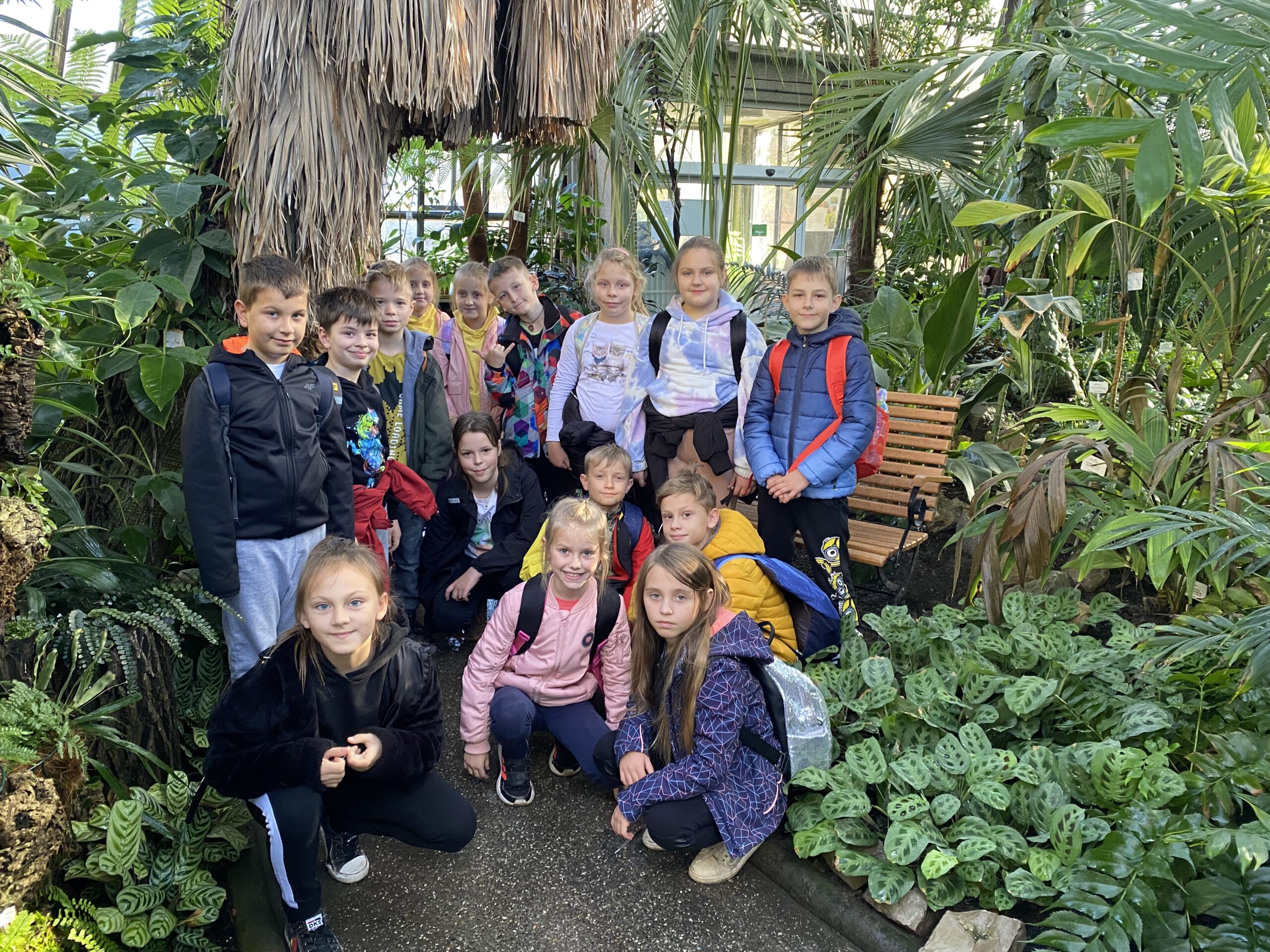Pod okiem przewodników podziwialiśmy z bliska piękno natury, odbywając podróż po najciekawszych miejscach Ogrodu. Uczniowie poznawali cenne obiekty przyrody, pomniki historii nauki, sztuki ogrodniczej i kultury wpisane do rejestru zabytków. Najbardziej uczniów zainteresowały stare okazy roślin, wśród których najokazalszym okazał się dąb szypułkowy zwany „Jagiellońskim”, którego wiek wynosi ok. 260 lat. Równie pięknie prezentowała się najstarsza polska robinia akacjowa i dwa „Derenie Śniadeckiego”. Z kolei w szklarni należało wysoko podnosić głowy, by dojrzeć czubek ponad stuletniej palmy – daktylowca kanaryjskiego. W dalszej kolejności uczniowie poznali kolekcję sagowców – starą grupę roślin obecnie występujących w tropikalnych i podzwrotnikowych częściach świata. Niezwykle interesujące dla uczniów okazały się rośliny mięsożerne, które posiadają zdolność chwytania różnych organizmów. W zachwyt wprawiła dzieci najstarsza i najbogatsza kolekcja storczyków, licząca obecnie około 500 gatunków i odmian. Uczniowie mieli również możliwość rozpoznawania roślin użytkowych rozproszonych po całym Ogrodzie. W szklarniach podziwialiśmy rośliny tropikalne, palmy, rośliny mięsożerne, sagowce, pieprz, ryż, bawełnę. W muzeum obejrzeliśmy rośliny pustynne, epifity, rośliny drapieżne, porosty…