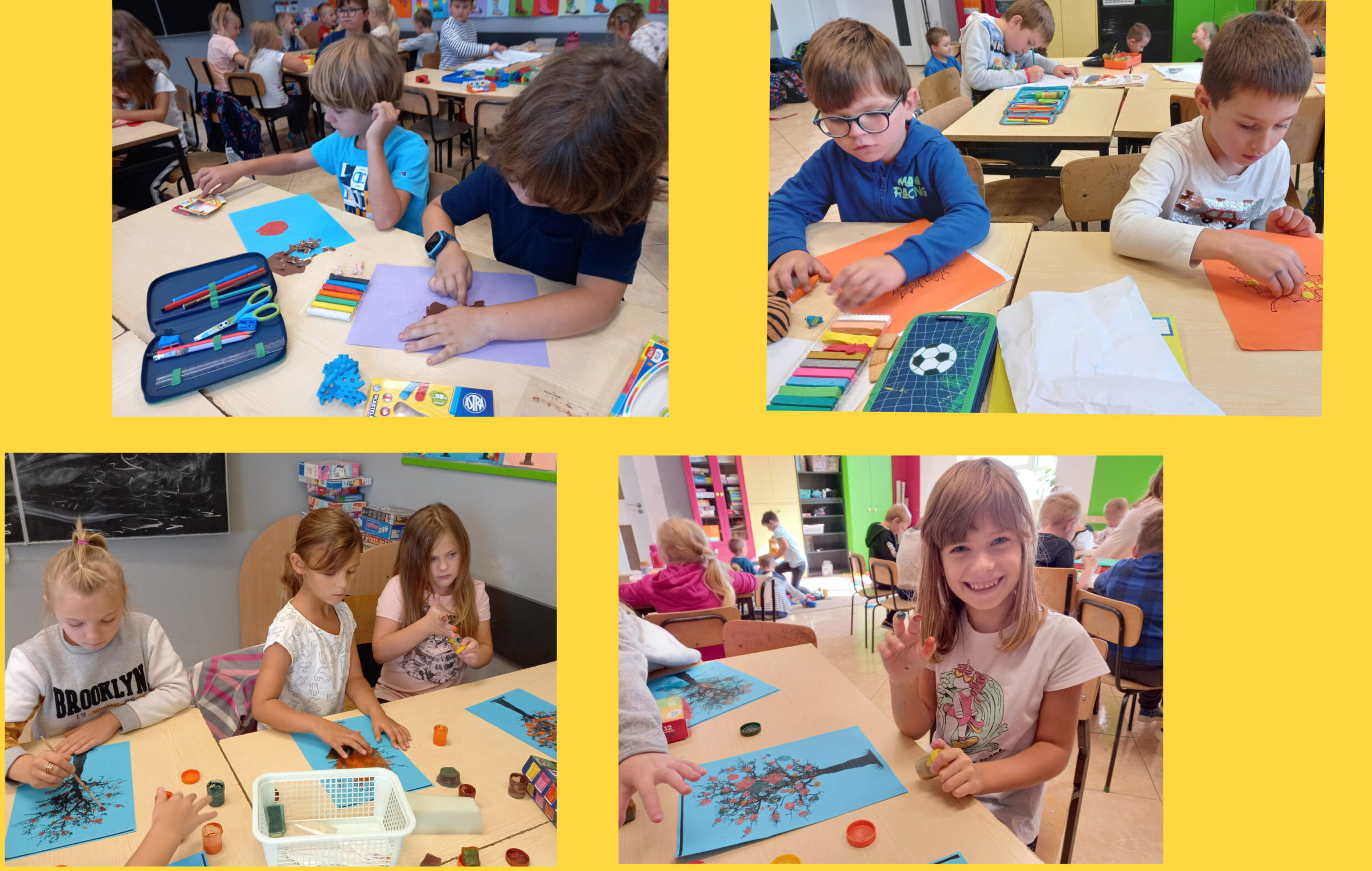 Jesień już na dobre rozgościła się wokół nas – w sadzie, w parku, w lesie, a nawet w naszej świetlicy. Świetlicowa jesień jest kolorowa i piękna. Inspiracji do wystroju i prac plastycznych szukaliśmy wszędzie. Samodzielnie wykonane ozdoby pozwoliły uczniom spędzić miło czas i wprowadzić do świetlicy ciepłą, pogodną atmosferę.