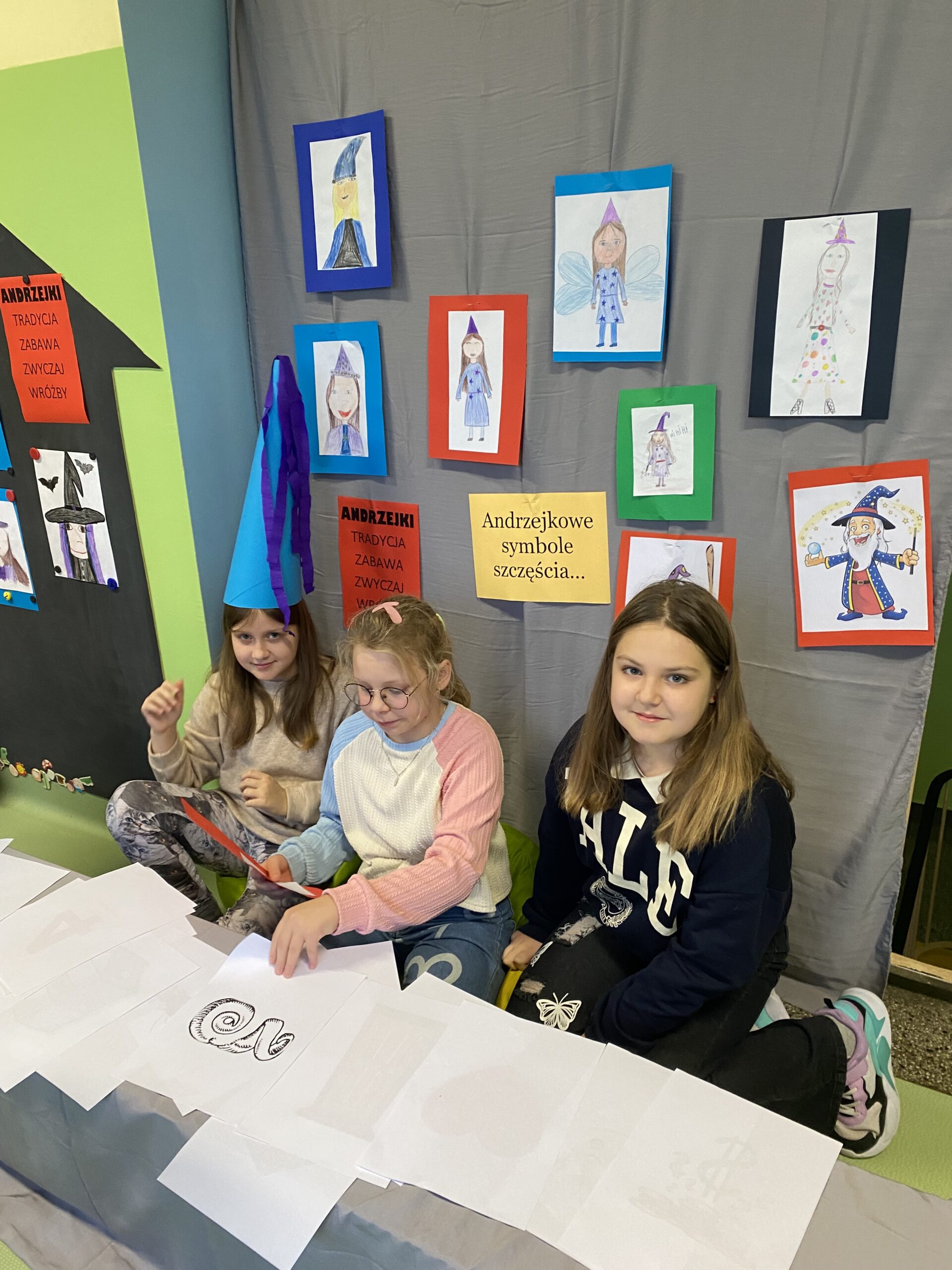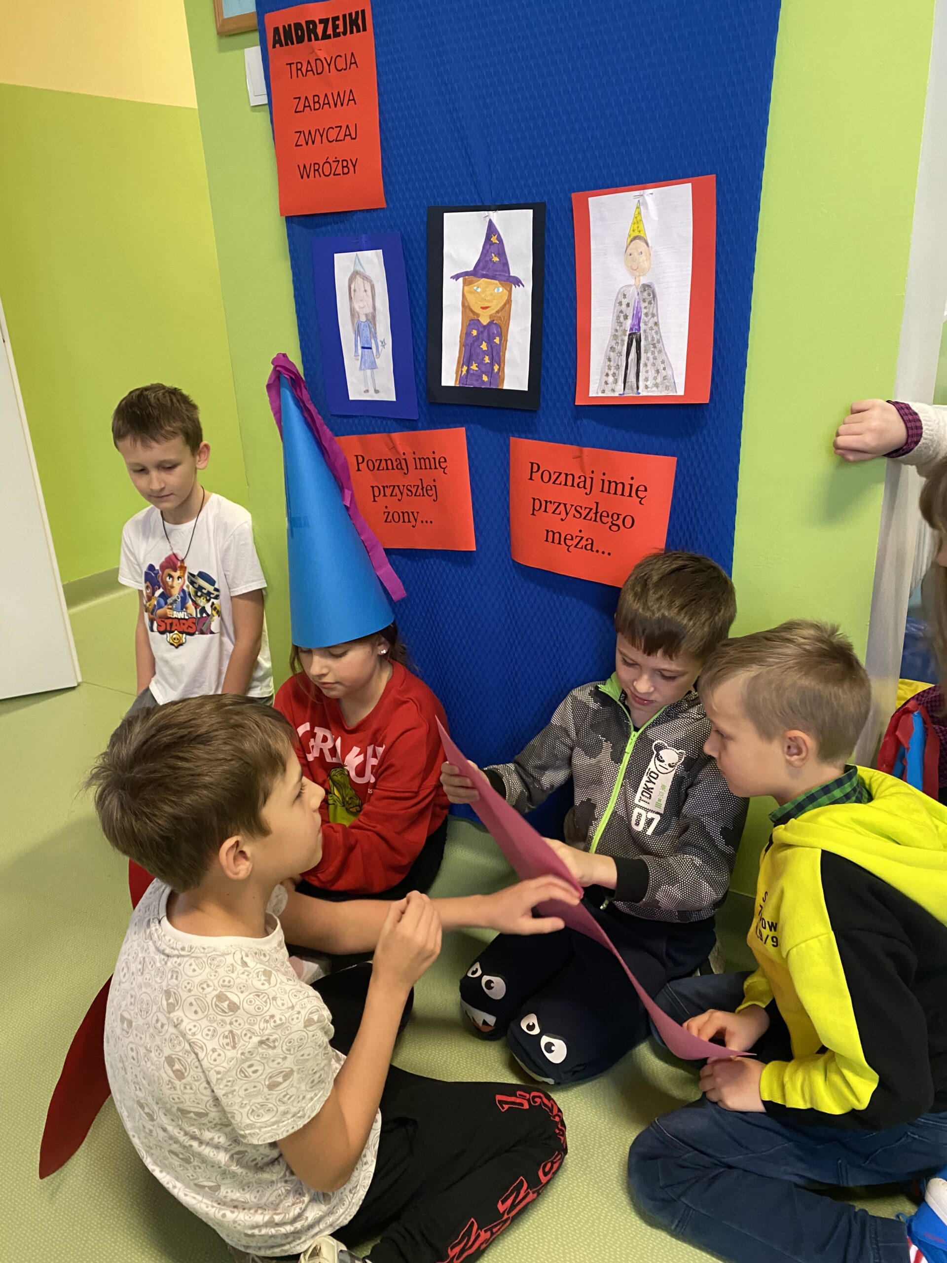 30 listopada upłynął w klasach I-III pod znakiem tradycji i wróżb. Wróżki i wróżbici z Małego Samorządu Uczniowskiego przygotowali różne zabawy i wróżby. Podczas każdej przerwy można było skorzystać z usług wróżek i posłuchać co czeka nas w przyszłości. Każdy z niecierpliwością przekłuwał papierowe serce, aby odczytać imię swojej sympatii. Losował magiczne karteczki, na których widniały nazwy zawodów przyszłości. Wiele śmiechu i radości dostarczyły uczniom przepowiednie. Wszyscy gorączkowo czekali na to, aby dowiedzieć się kto będzie bogaty i komu w życiu się powiedzie.