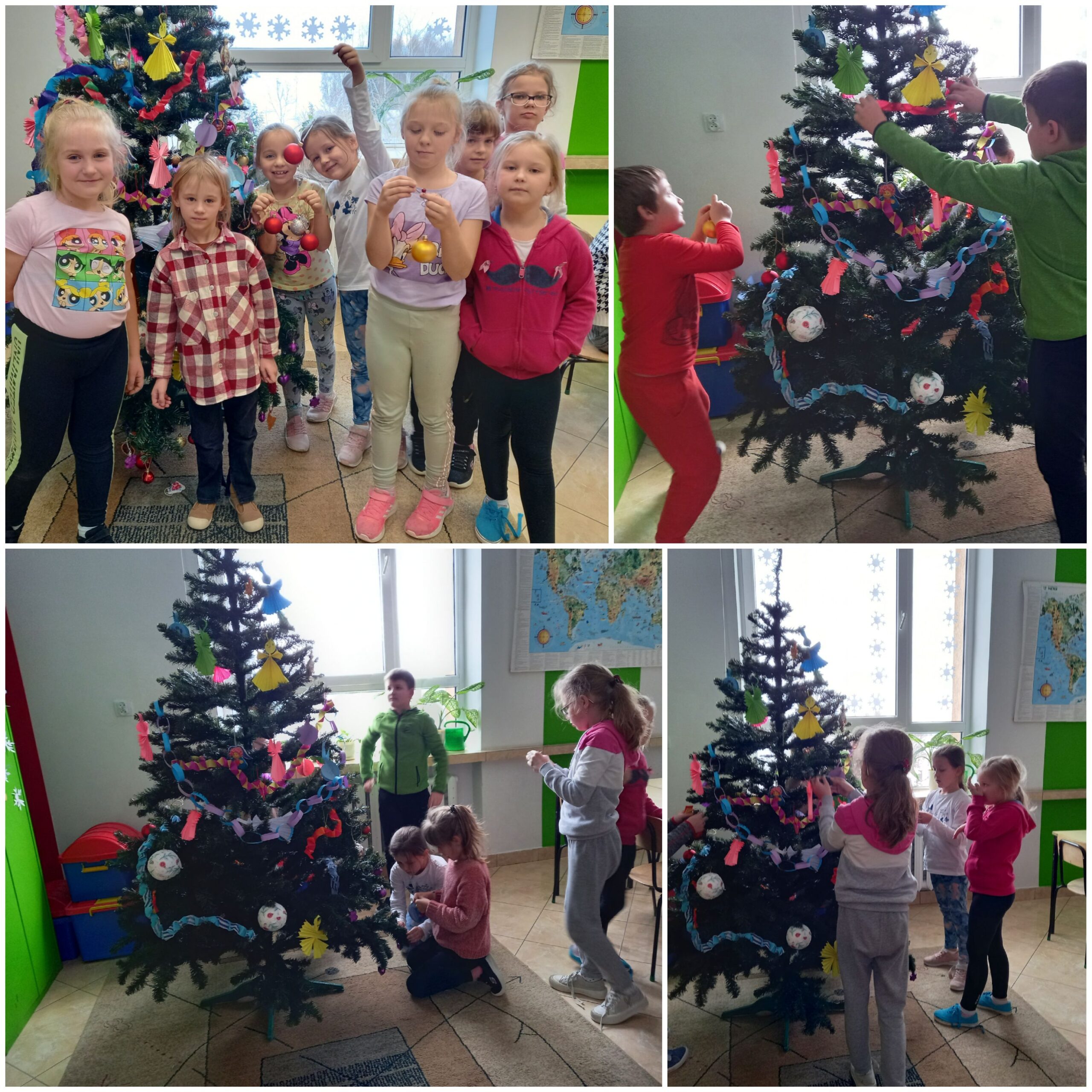 Boże Narodzenie to dla wielu z nas najpiękniejsze święta w roku. Do naszej świetlicy również zawitał świąteczny nastrój. Uczniowie wykonali bożonarodzeniowe dekoracje, które ozdobiły nasze okna, ściany i tablice. Zrobili wiele ozdób choinkowych, aniołki, bombki, łańcuchy, którymi przystroili świetlicową choinkę. Podczas wykonywania ozdób, zgodnie z polską tradycją, wspólnie kolędowaliśmy. Świąteczne zajęcia przygotowały nas do przeżywania magicznego czasu Bożego Narodzenia w rodzinnym gronie.