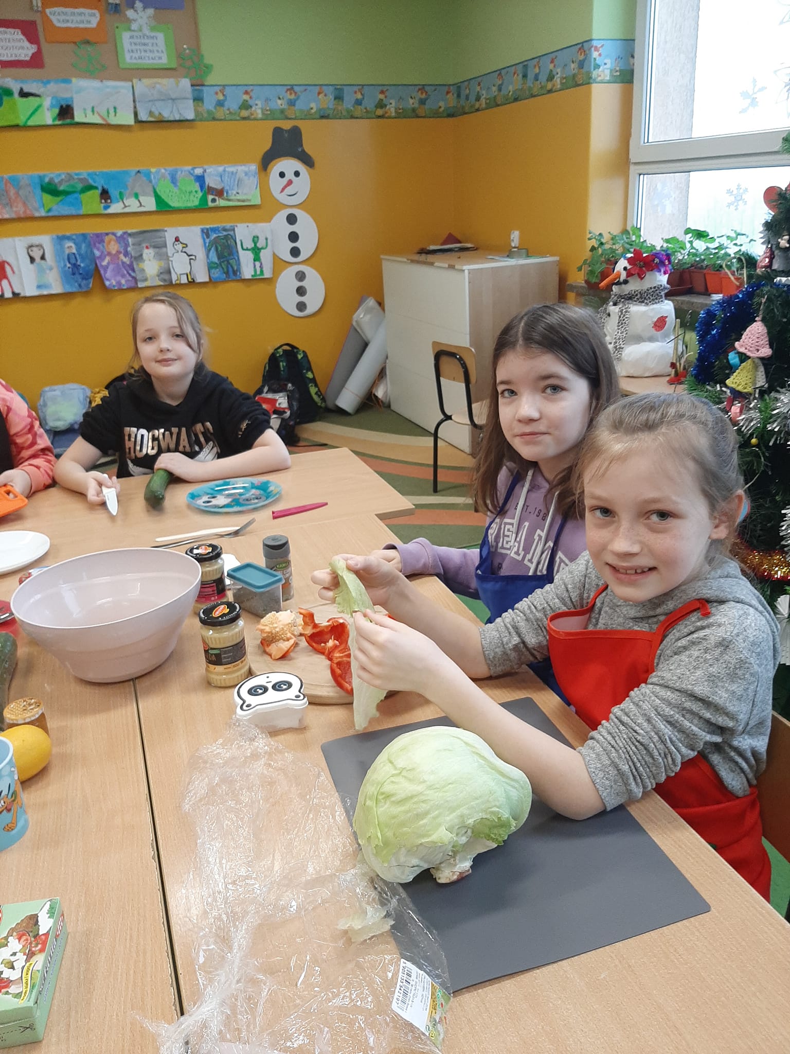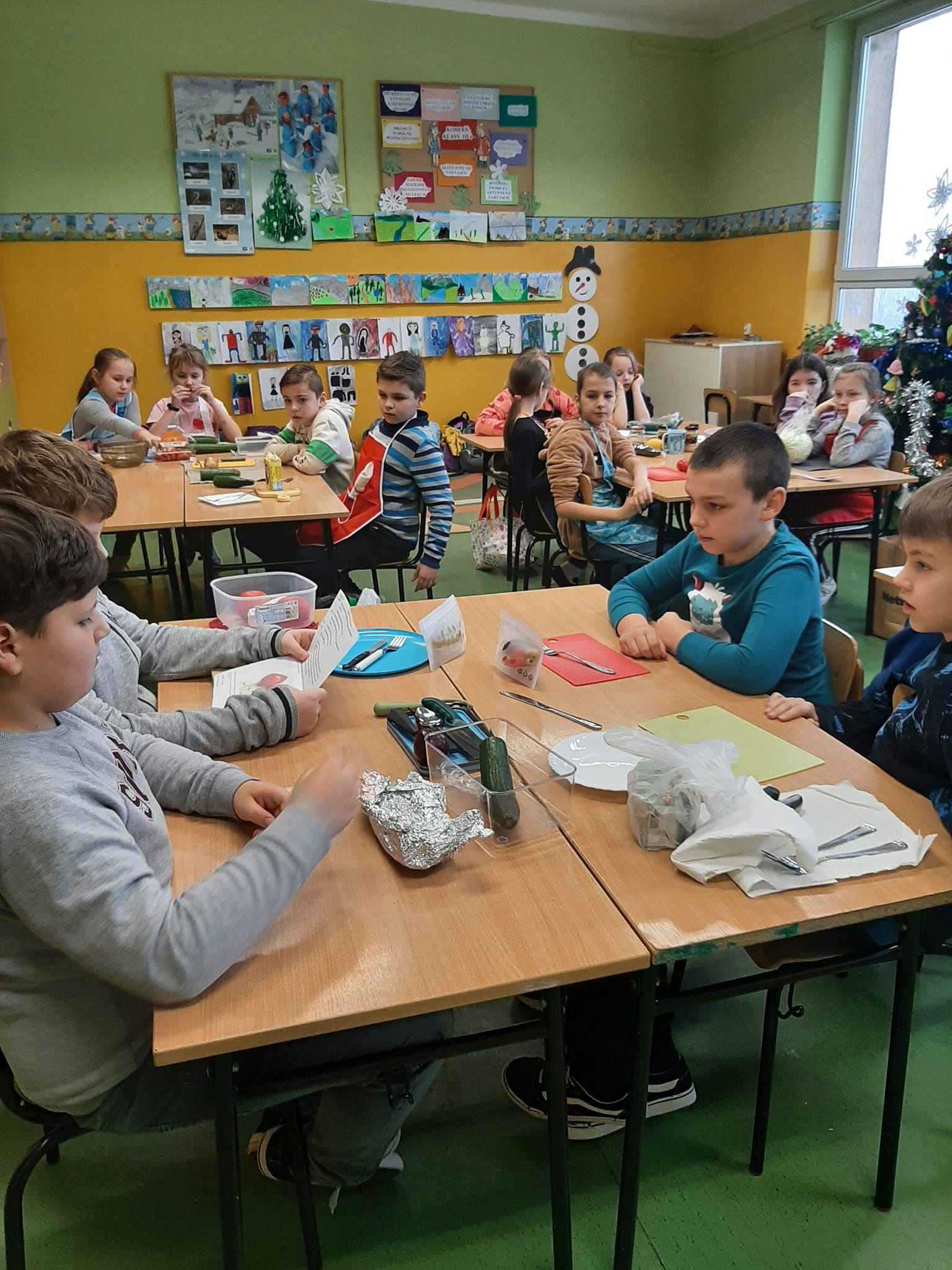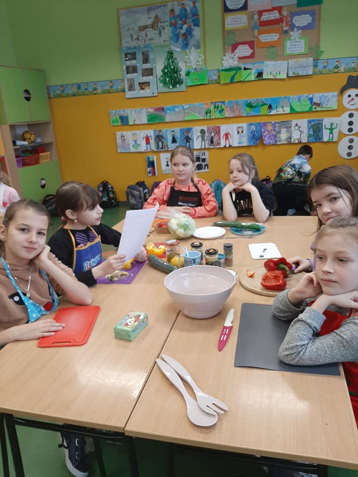 W czwartek w ramach projektu JA w Europie poznawaliśmy kuchnię grecką. Uczniowie klasy IIIa w grupach przygotowali przepisy na sałatkę grecką i potrzebne produkty. Okazało się, że tych przepisów jest wiele, toteż sałatka w każdej grupie wyszła inna. Wszystkie jednak były wyśmienite. Smaczne i zdrowe śniadanie zjadły w tym dniu i dzieci i panie.