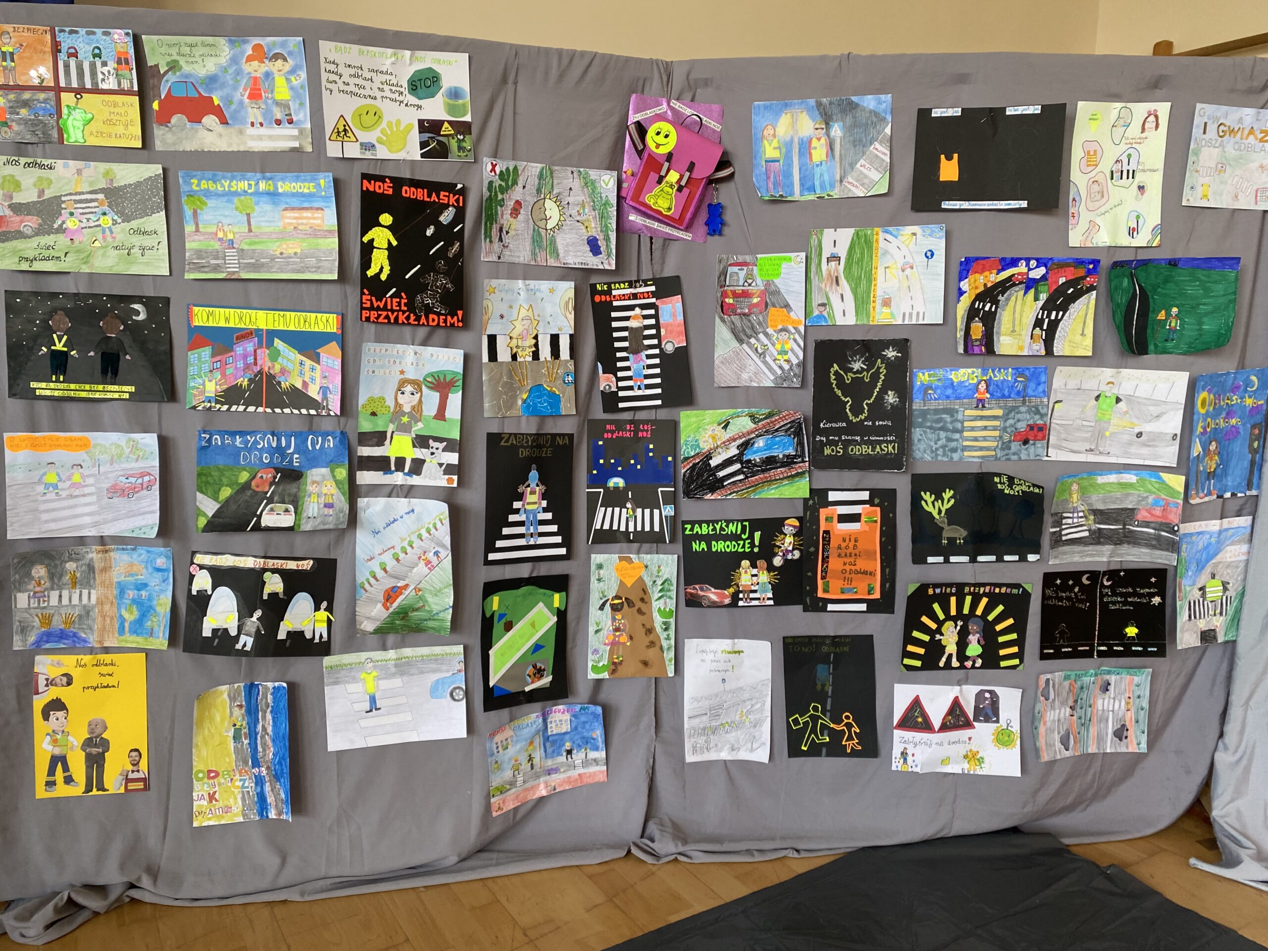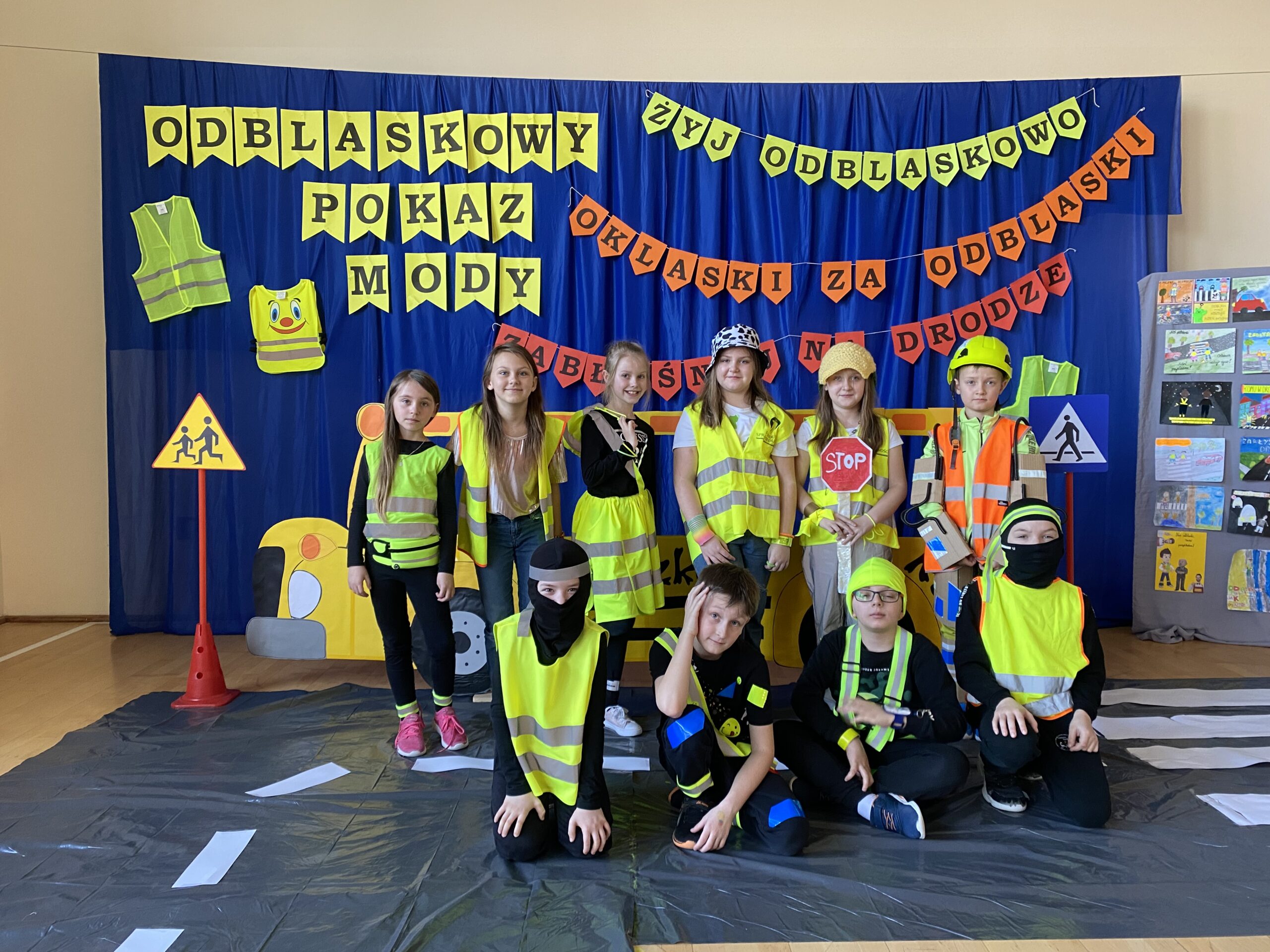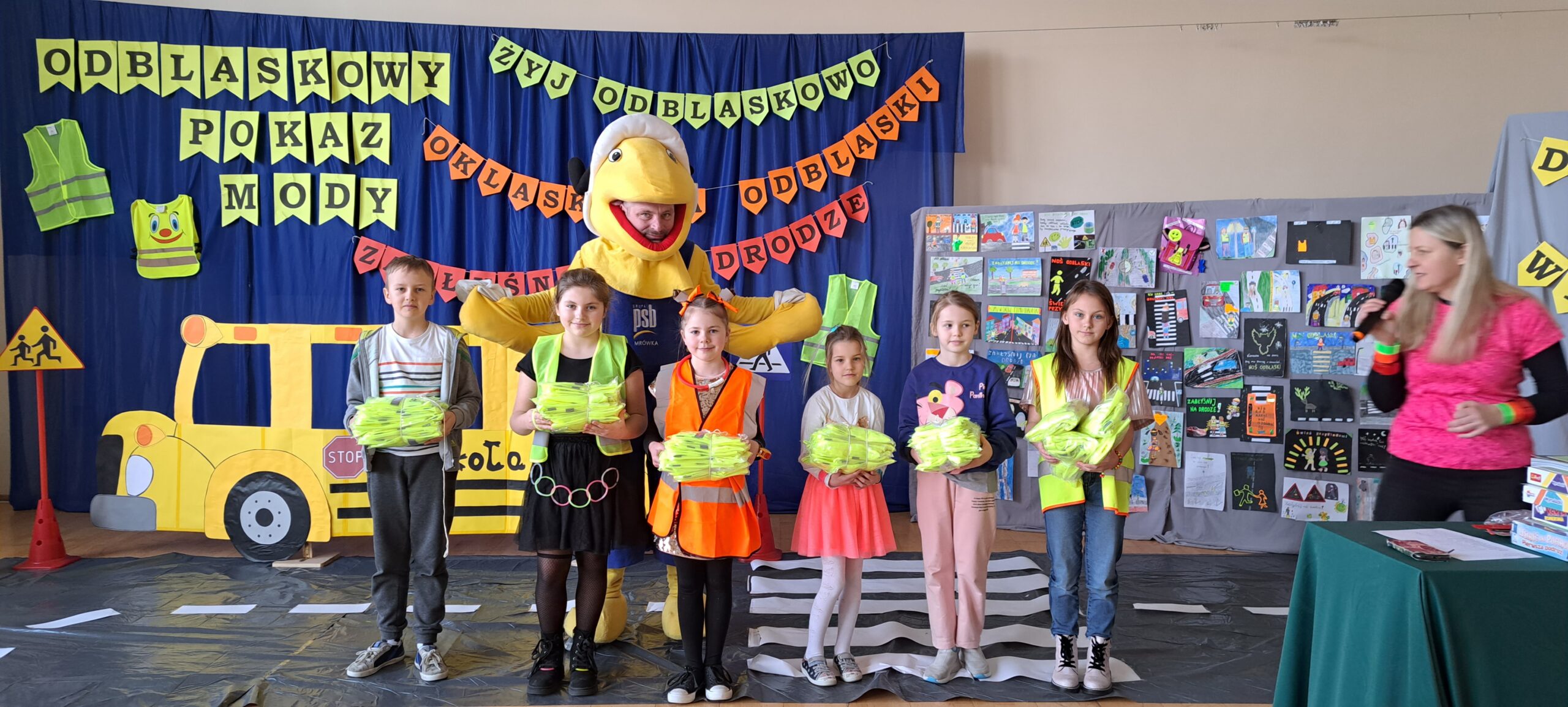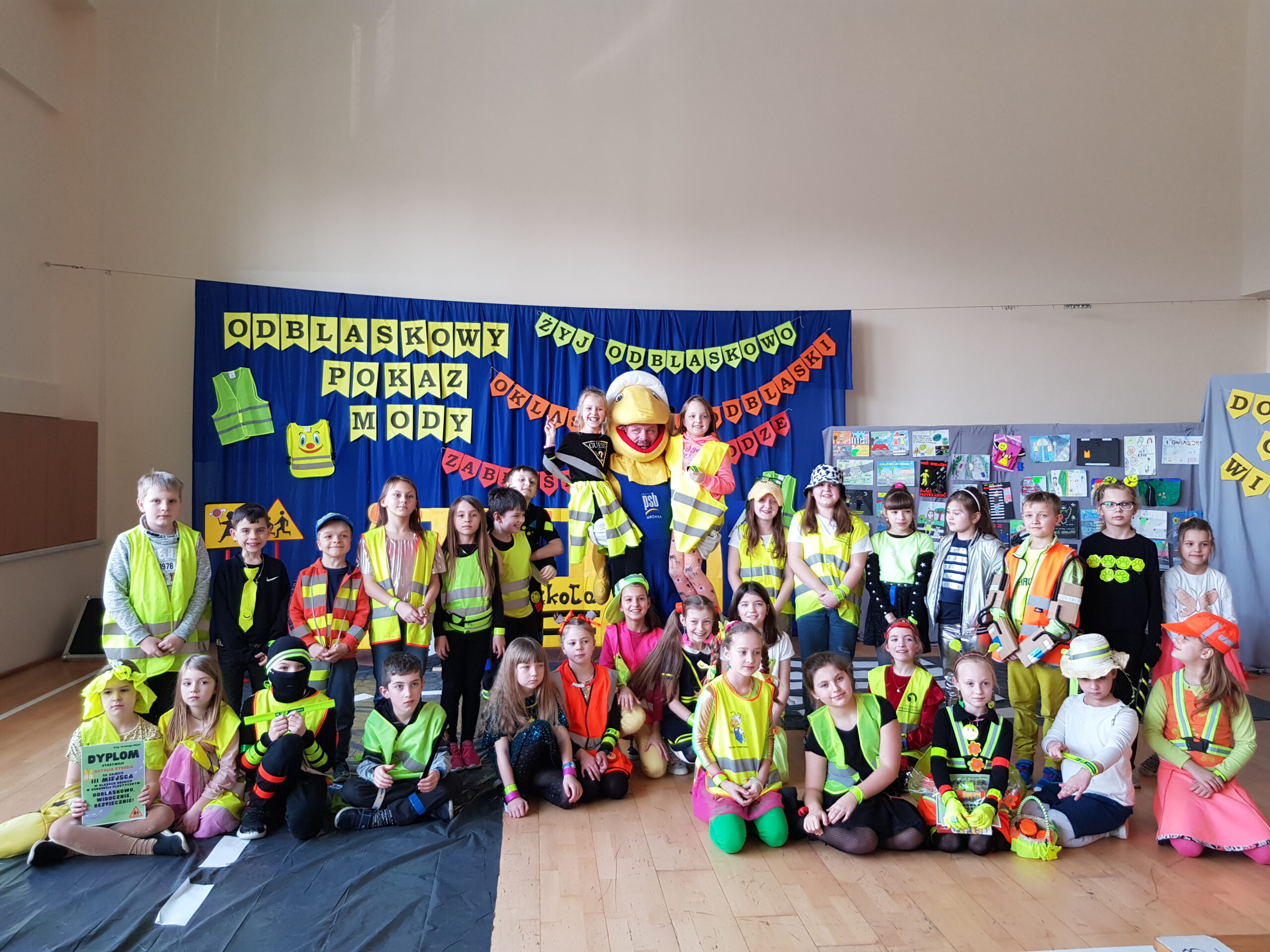 Dzień bezpieczeństwa na drodze – pod tym hasłem upłynął klasom młodszym 16 lutego – było kolorowo, wesoło i odblaskowo! Przedsięwzięcie miało na celu promować ideę bezpieczeństwa w ruchu drogowym oraz przypominać o obowiązku noszenia przez uczniów odblasków. Na nieoświetlonej drodze piesi noszący ciemne ubrania są widoczni dla kierowcy z zaledwie z kilkunastu metrów. Korzystanie z elementów odblaskowych poprawia widoczność pieszego kilkukrotnie, dzięki czemu kierujący może dużo wcześniej ominąć lub zahamować przed taką osobą. Materiały odblaskowe odbijają padające na nie światło. Prawidłowo noszone powinny być w polu działania świateł i być widoczne dla kierowców jadących z obu kierunków.