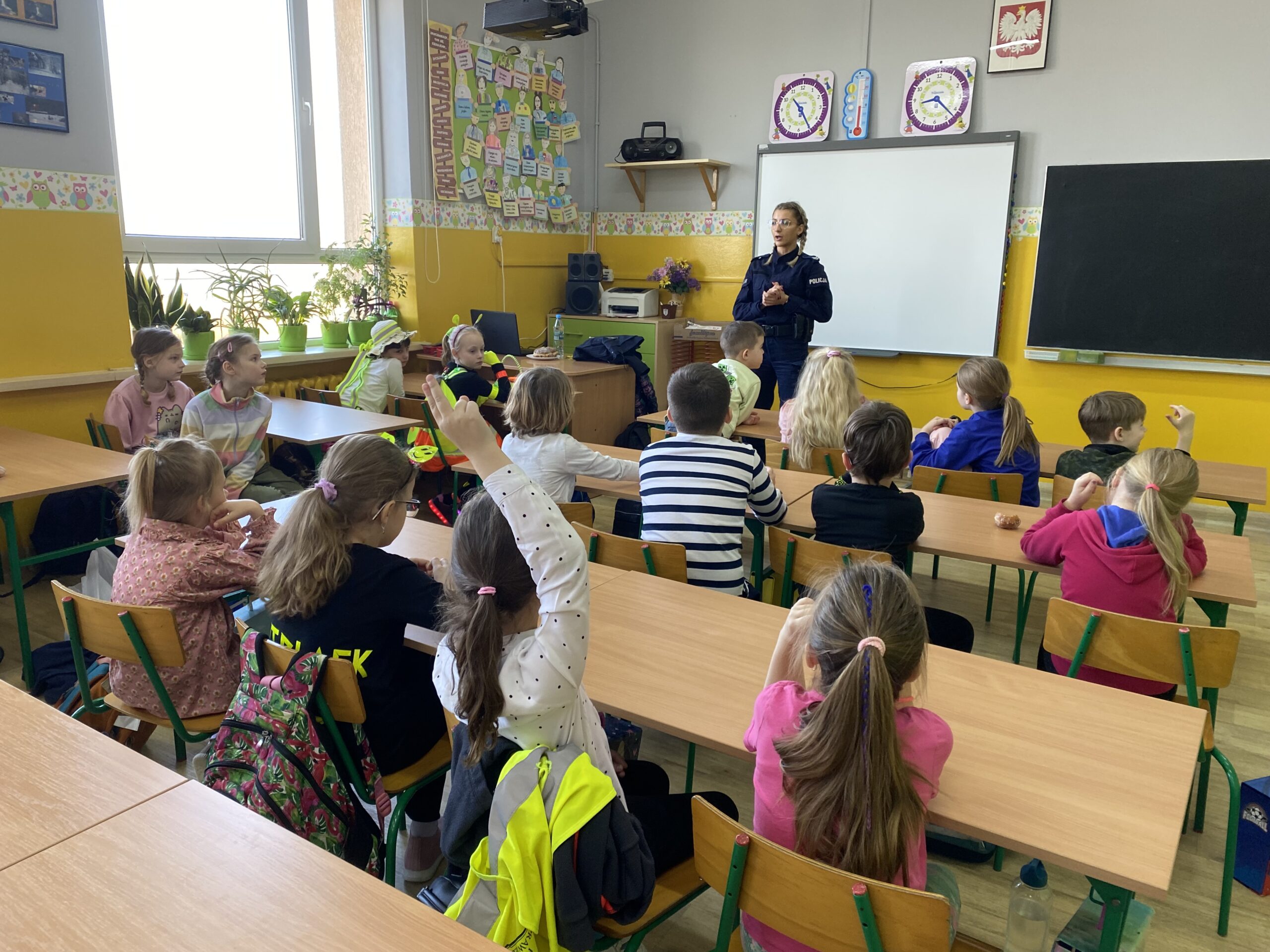 - We wszystkich klasach młodszych odbyło się bardzo pouczające i ciekawe spotkanie z policjantem, ze st. sierż. Adrianną Palonek z Komendy Powiatowej Policji w Wieliczce.