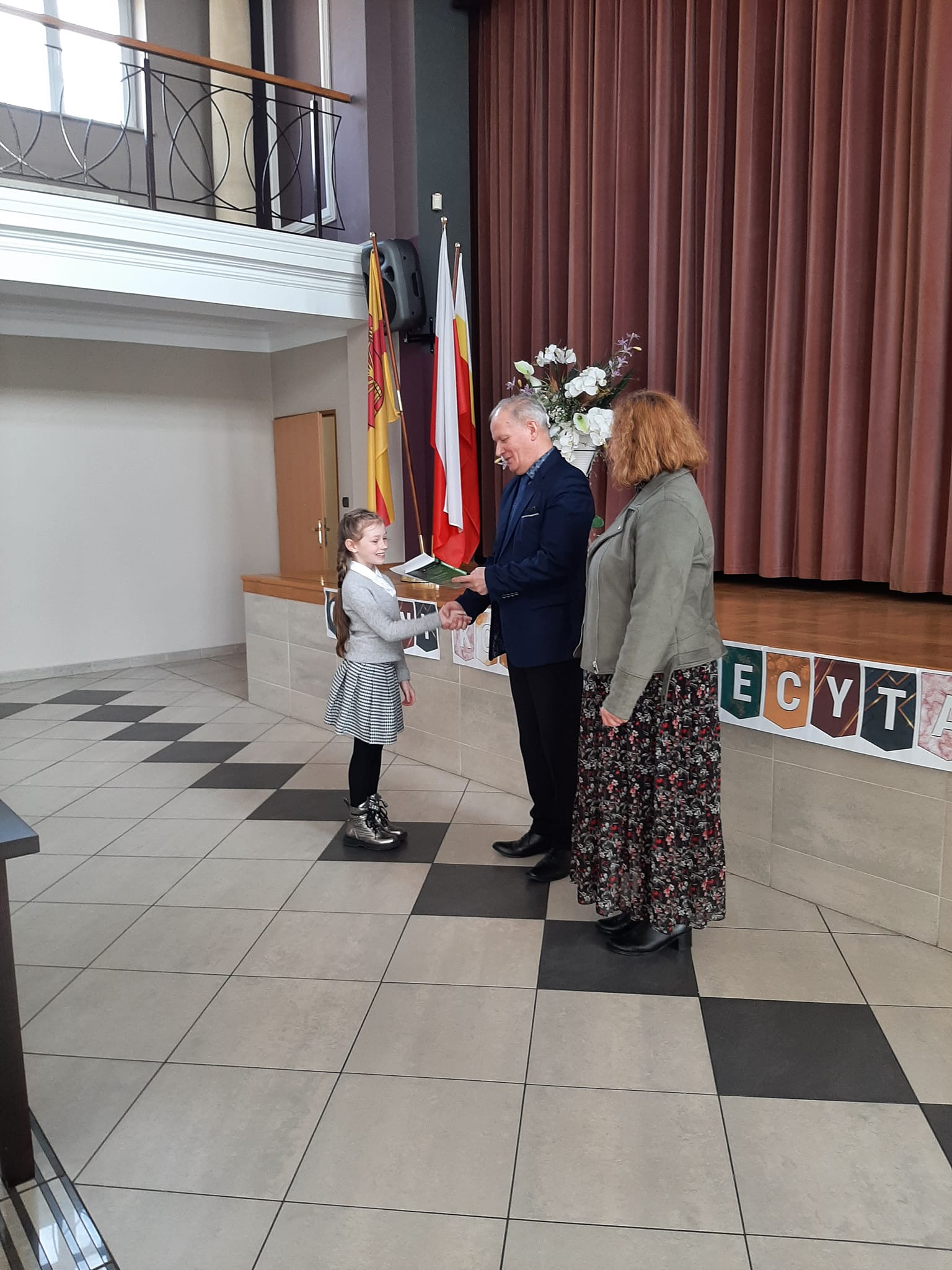 Dzisiaj w Urzędzie Gminy odbył się Gminny Konkurs Recytatorski. Naszą szkołę reprezentowały: Agatka Palich i Lenka Skupień z kl. 3a i Gabrysia Długosz z kl. 2a. Na scenie rozegrała się prawdziwa bitwa na słowa. Komisja miała bardzo trudne zadanie, aby wyłonić dwóch najlepszych uczestników. UDAŁO SIĘ!!! – LENKA SKUPIEŃ otrzymała I miejsce i reprezentować nas będzie w Powiatowym Konkursie Recytatorskim w Wieliczce.