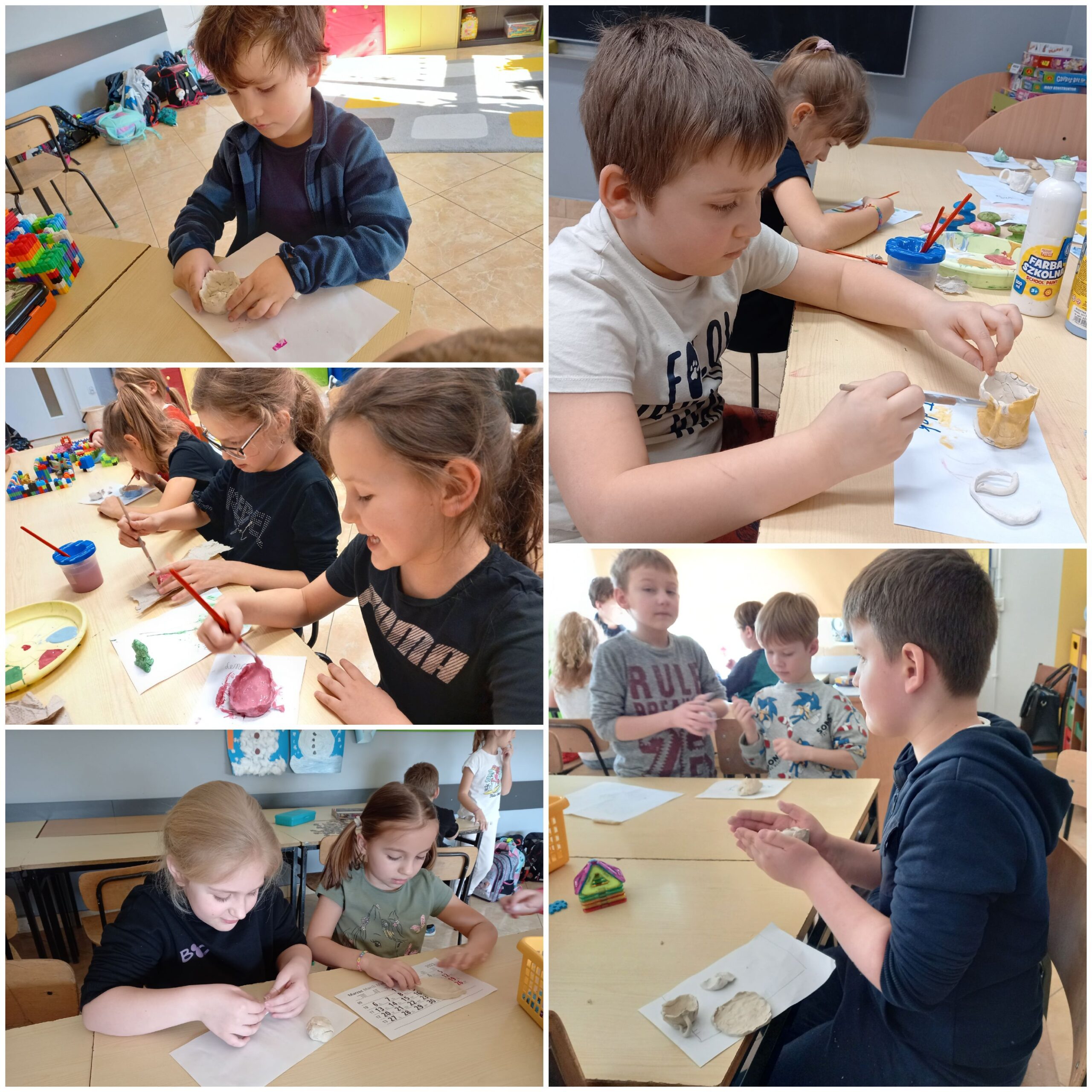 Grupa I świetlicy wykonała następne zadanie w ramach projektu „Zabawa sztuką”. Tym razem odwiedziliśmy wirtualnie pracownię artysty-garncarza. Poznaliśmy jego pracę, materiały i narzędzia, które w niej wykorzystuje. Następnie spróbowaliśmy swoich sił wykonując z gliny samoutwardzalnej naczynia oraz róże ozdoby. Po wyschnięciu pomalowaliśmy je farbami. Stwierdziliśmy, że praca garncarza jest ciekawa, ale niełatwa. Wymaga wiele cierpliwości , dokładności, ale sprawia dużo satysfakcji.
