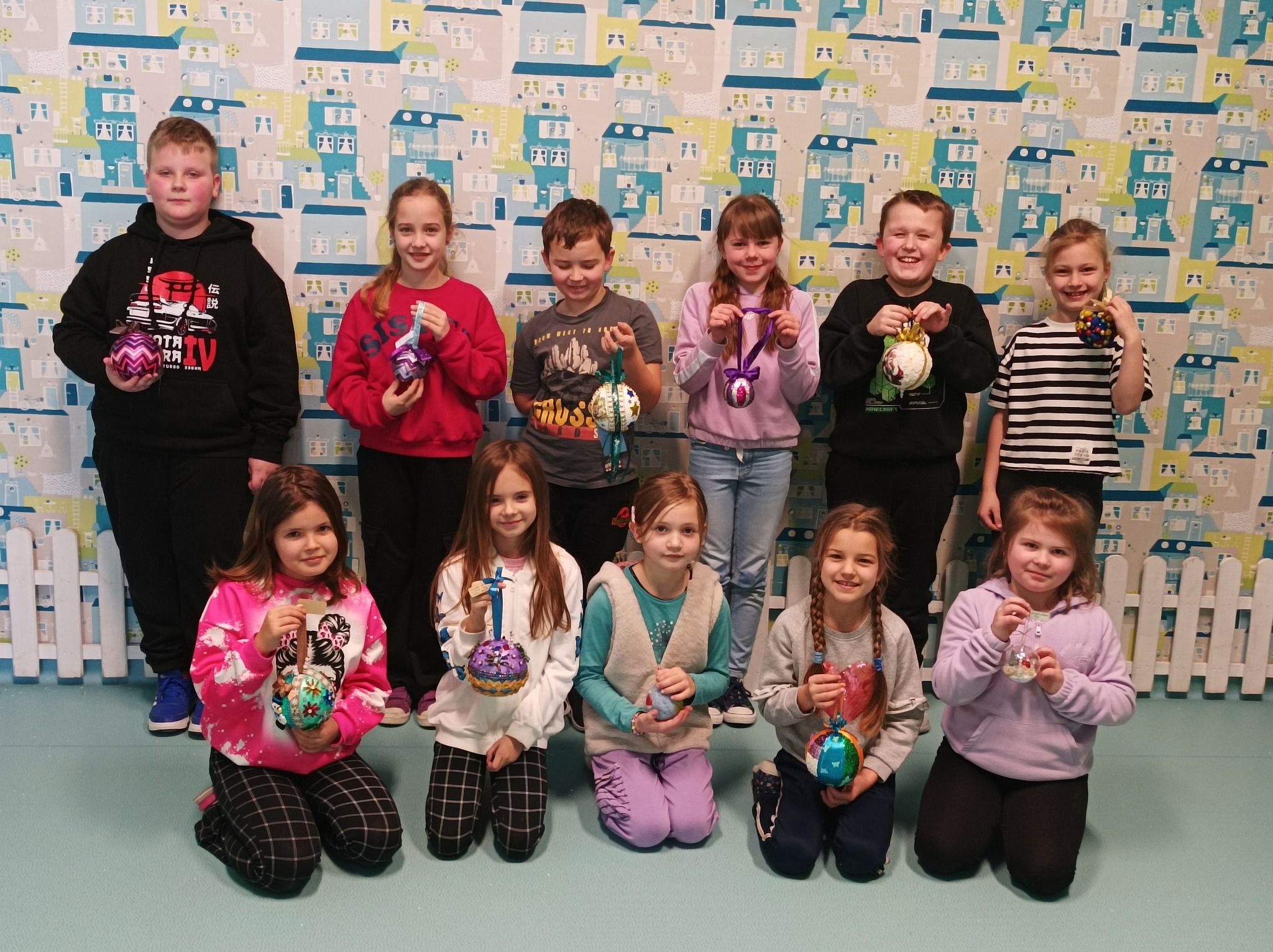 W grudniu 2023 r. uczniowie klas I-III wzięli udział w szkolnym konkursie plastycznym „Najpiękniejsza bombka choinkowa”. Celem konkursu było podtrzymanie tradycji wykonywania bombek bożonarodzeniowych, rozwijanie wrażliwości estetycznej oraz uzdolnień plastycznych dzieci, pobudzanie ich twórczej wyobraźni, a także pogłębianie relacji rodzinnych. Zadaniem uczestników konkursu było przygotowanie przestrzennej bombki, dowolnej wielkości i kształtu, ozdobionej według uznania. Napłynęło wiele prac konkursowych, a dzieci wykazały się dużą kreatywnością i pomysłowością. Wszystkie bombki były piękne i oryginalne, starannie wykonane różnorodnymi technikami plastycznymi i niezwykle pomysłowe. Komisja konkursowa miała twardy orzech do zgryzienia, aby wśród tak wielu kolorowych, wykonanych różnymi technikami bombek, wybrać te najpiękniejsze. Ostatecznie, biorą pod uwagę: zgodność z tematem, walory artystyczne, pomysłowość, oryginalność, pracochłonność i estetykę, wyłoniono laureatów w trzech kategoriach: klasy I, klasy II, Klasy III.