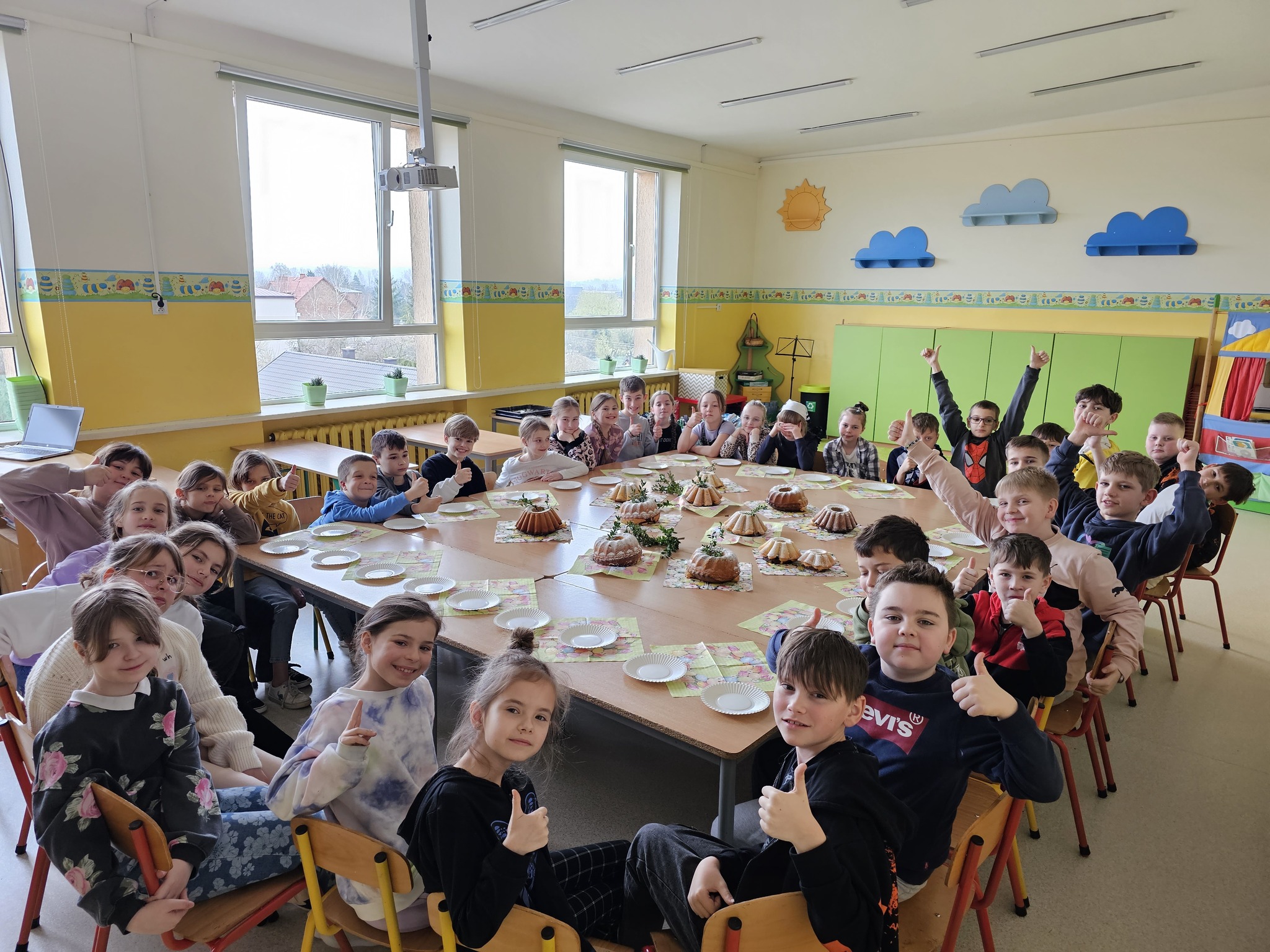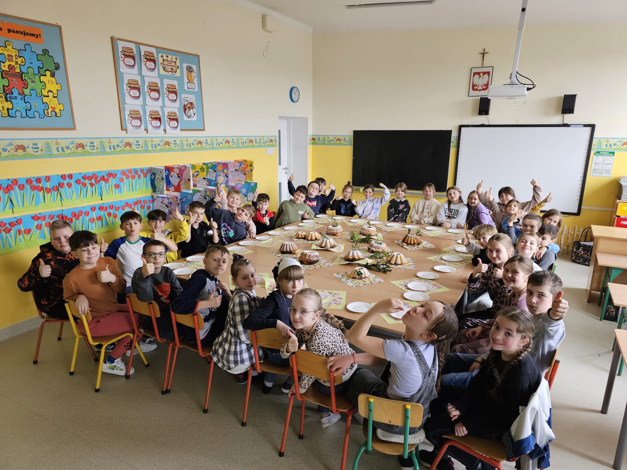 Wielkie pieczenie babek wielkanocnych to wspaniała tradycja! Pieczenie babek w szkole może być nie tylko zabawną aktywnością, ale także edukacyjnym doświadczeniem, które uczy dzieci podstawowych umiejętności kulinarnych oraz wprowadza je w atmosferę Świąt Wielkanocnych. Przekonali się o tym uczniowie klas trzecich. Podczas tego rodzaju aktywności uczyli się współpracy, pomiarów, mieszania składników, a także cierpliwości, ponieważ proces wypieku wymaga czasu. Zapach piekących się babeczek wypełniał całą szkołę. Trzecioklasiści świetnie się bawili i z przyjemnością próbowali swoich wypieków. Takie doświadczenia pomagają w budowaniu więzi społecznych i kulturowych w szkole.