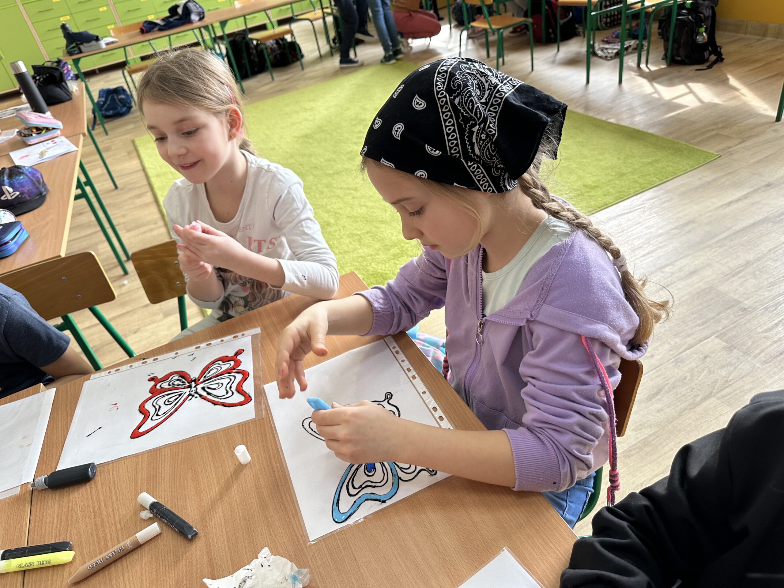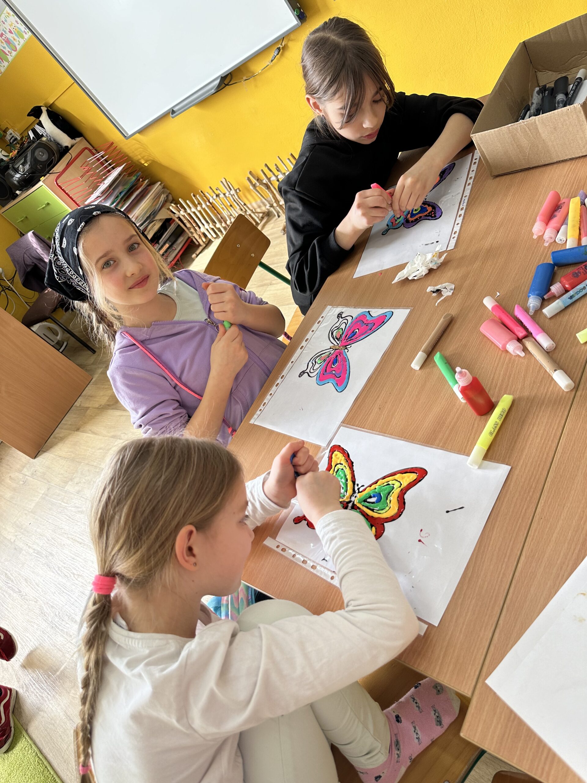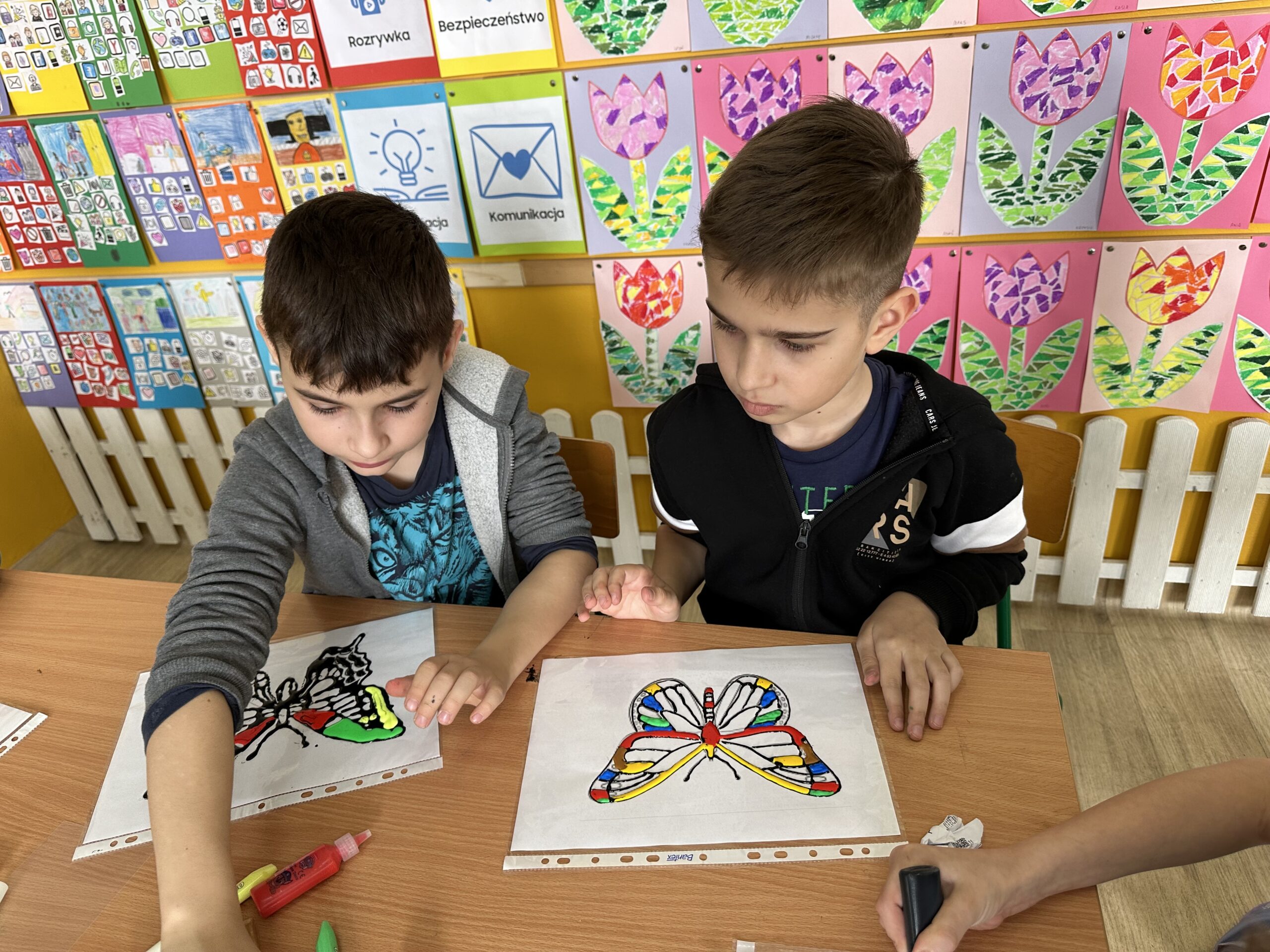 Po zakończeniu malowania, czekaliśmy z niecierpliwością, aż farby wyschną. W międzyczasie dzieliliśmy się pomysłami i zachwycaliśmy się pracami innych. Kiedy wreszcie nasze motyle były gotowe, z radością oglądaliśmy ich przepiękne barwy i detale.