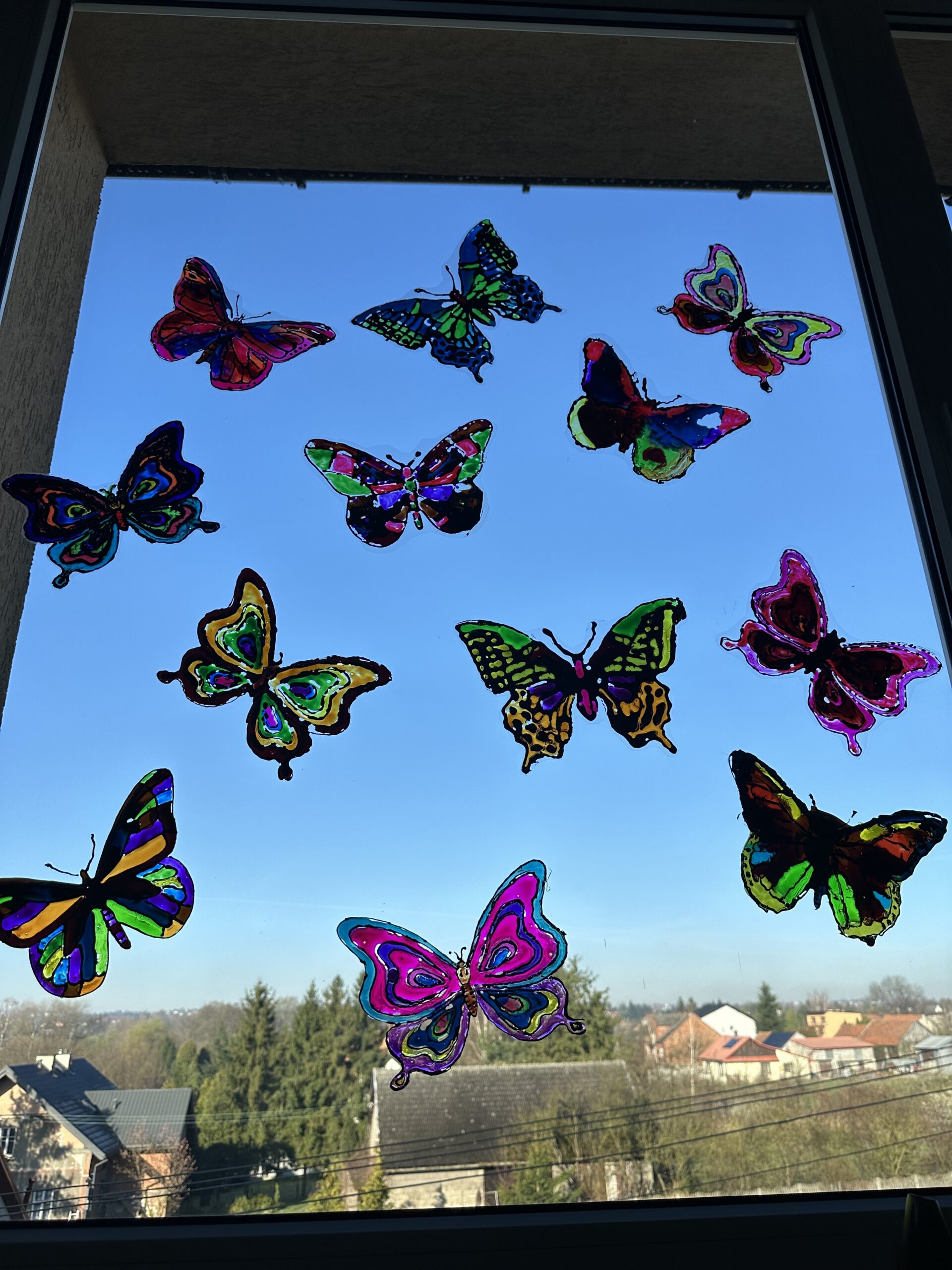 Teraz, gdy wszystkie nasze witrażowe motyle są umieszczone razem, tworzą magiczny mural pełen kolorów i inspiracji. To było naprawdę niezapomniane doświadczenie, które pozwoliło nam odkryć i wyrazić swoją twórczą duszę.