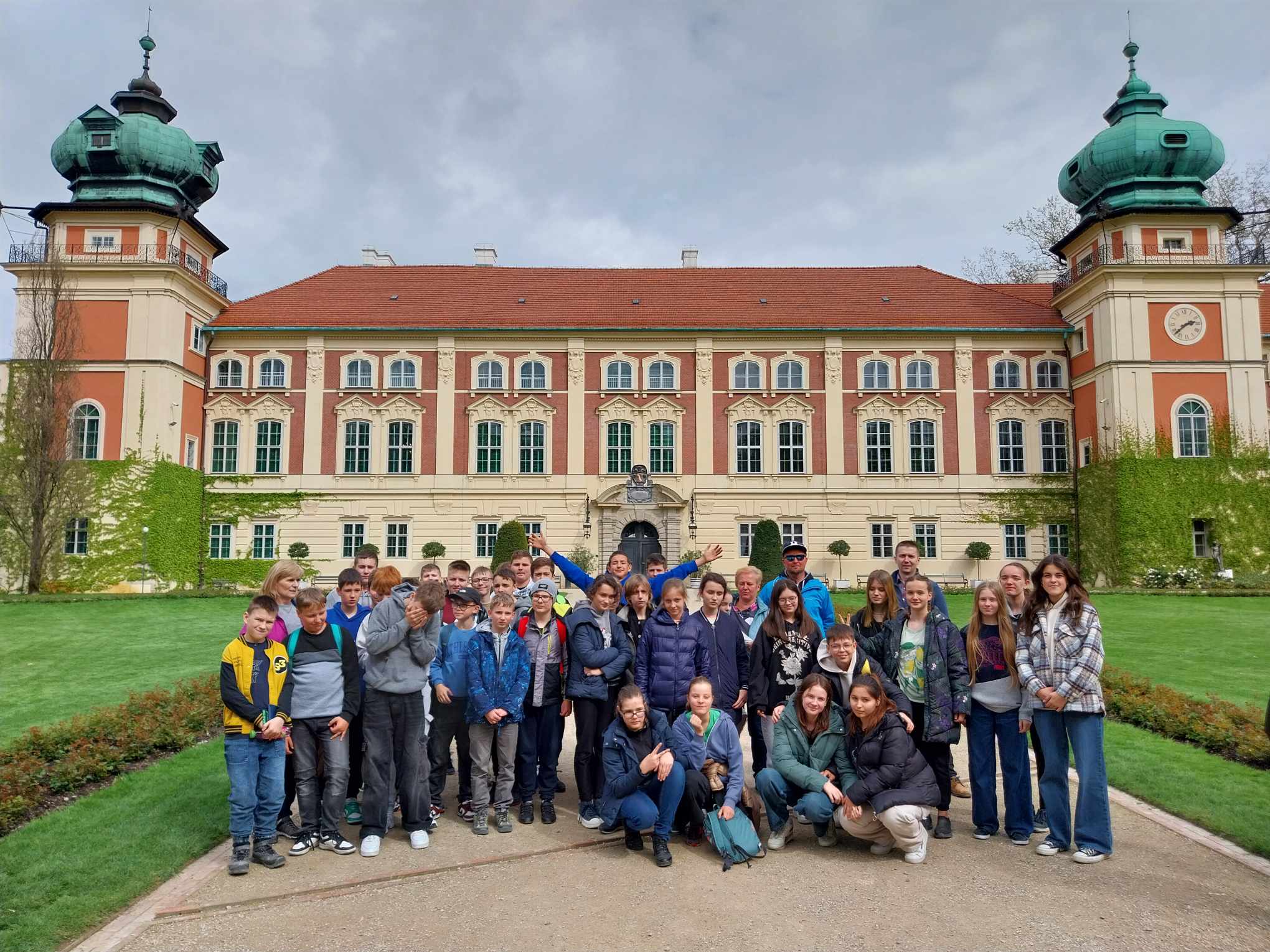 Po wizycie na Rzeszowskim Rynku udaliśmy się do Łańcuta. Zamek w Łańcucie. Jest to jedna z najpiękniejszych rezydencji arystokratycznych w Polsce. Podczas zwiedzania pałacowych wnętrz podziwialiśmy piękne komnaty wyposażone w meble, dzieła sztuki i inne elementy wystroju, które zrobiły na nas niemałe wrażenie. Usłyszeliśmy opowieści o właścicielach pałacu oraz zainteresowaniach magnackich rodów Lubomirskich i Potockich. Uczniów zachwyciły pełne przepychu i bogactwa wnętrza zamkowe, piękne posadzki, kryształowe żyrandole oraz antyczne posągi. Każde z pomieszczeń urządzone było z dużym wyczuciem stylu.