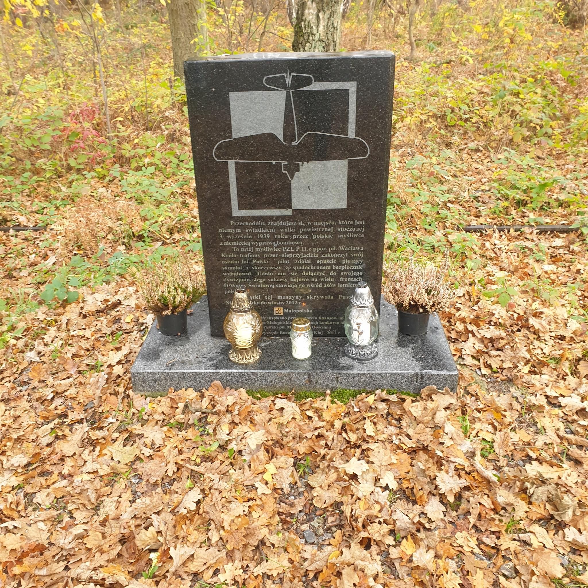 Na koniec – moment zadumy przy płycie, upamiętniającej powietrzną walkę na krajowskim niebie.
