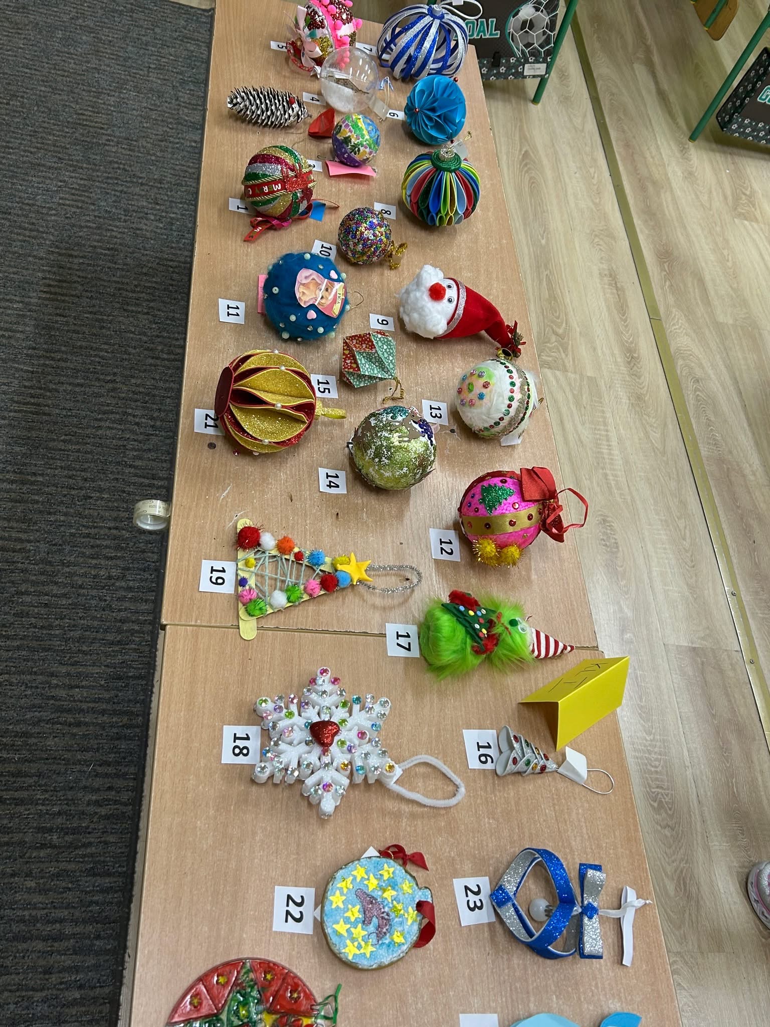 Szkolny konkurs plastyczny „Najpiękniejsza bombka choinkowa”.