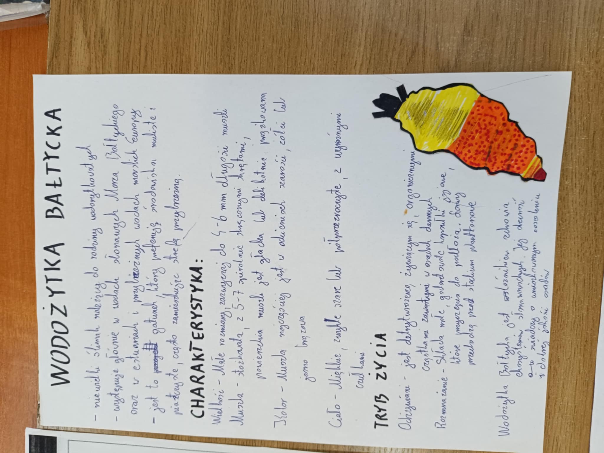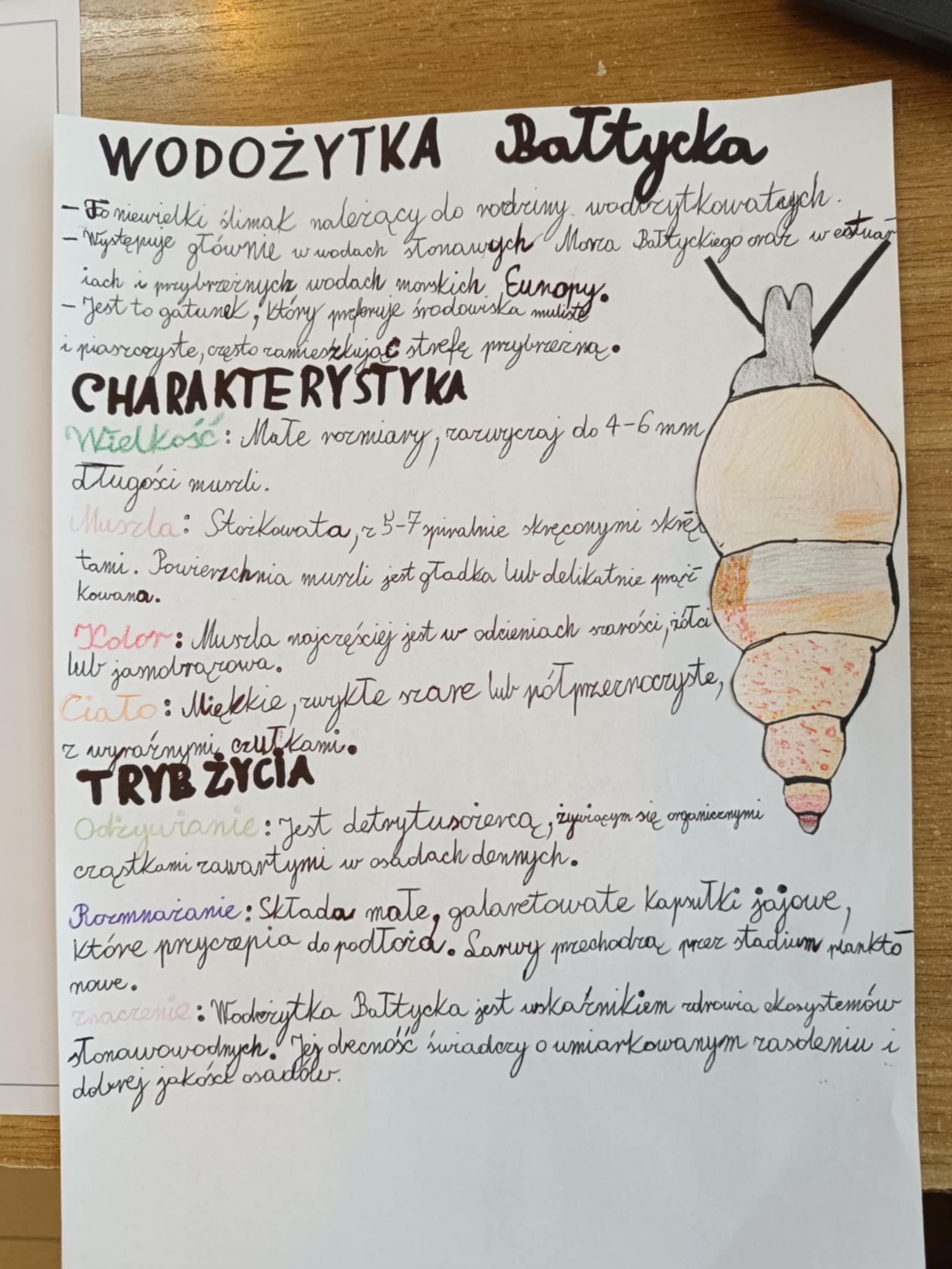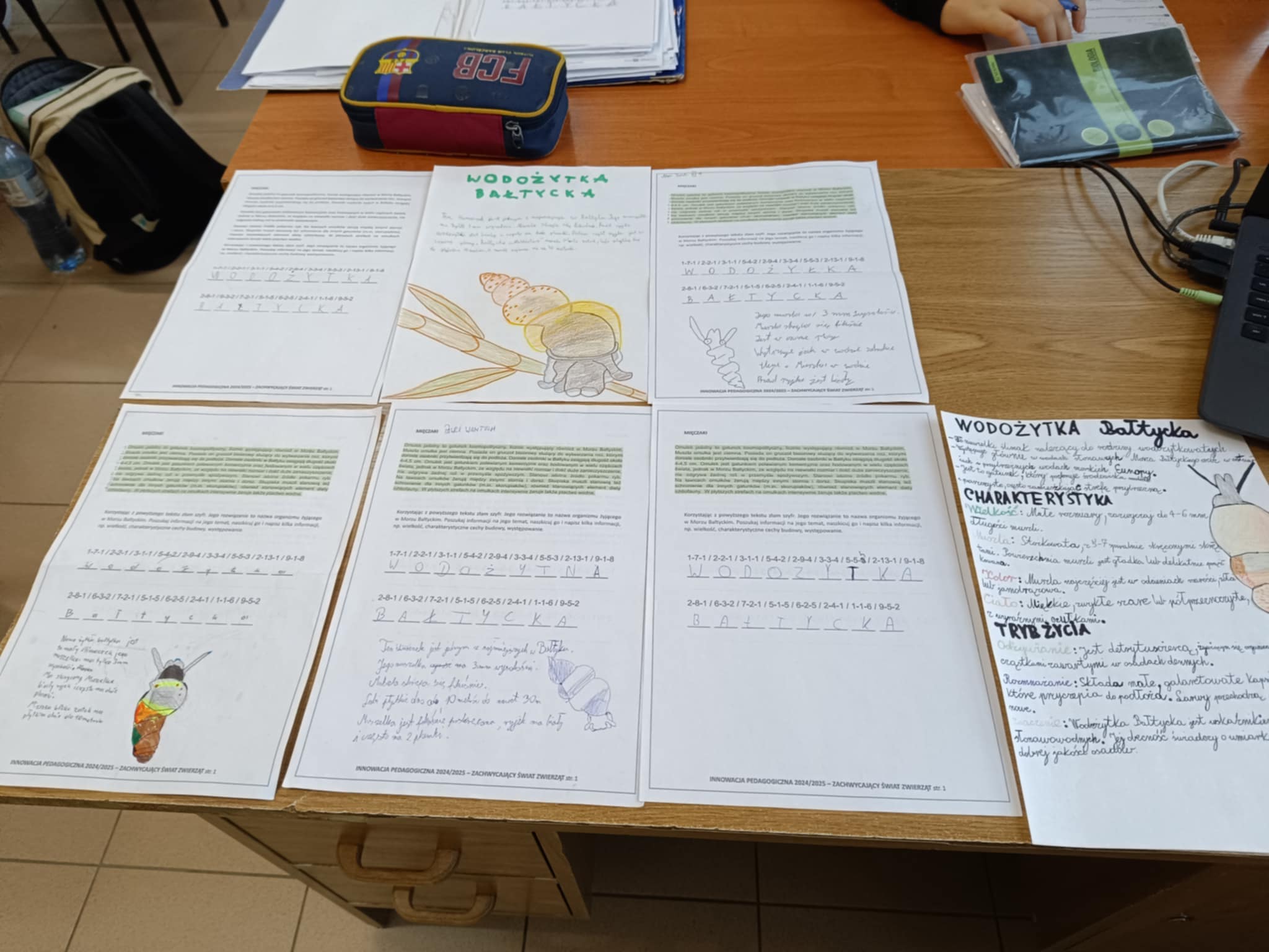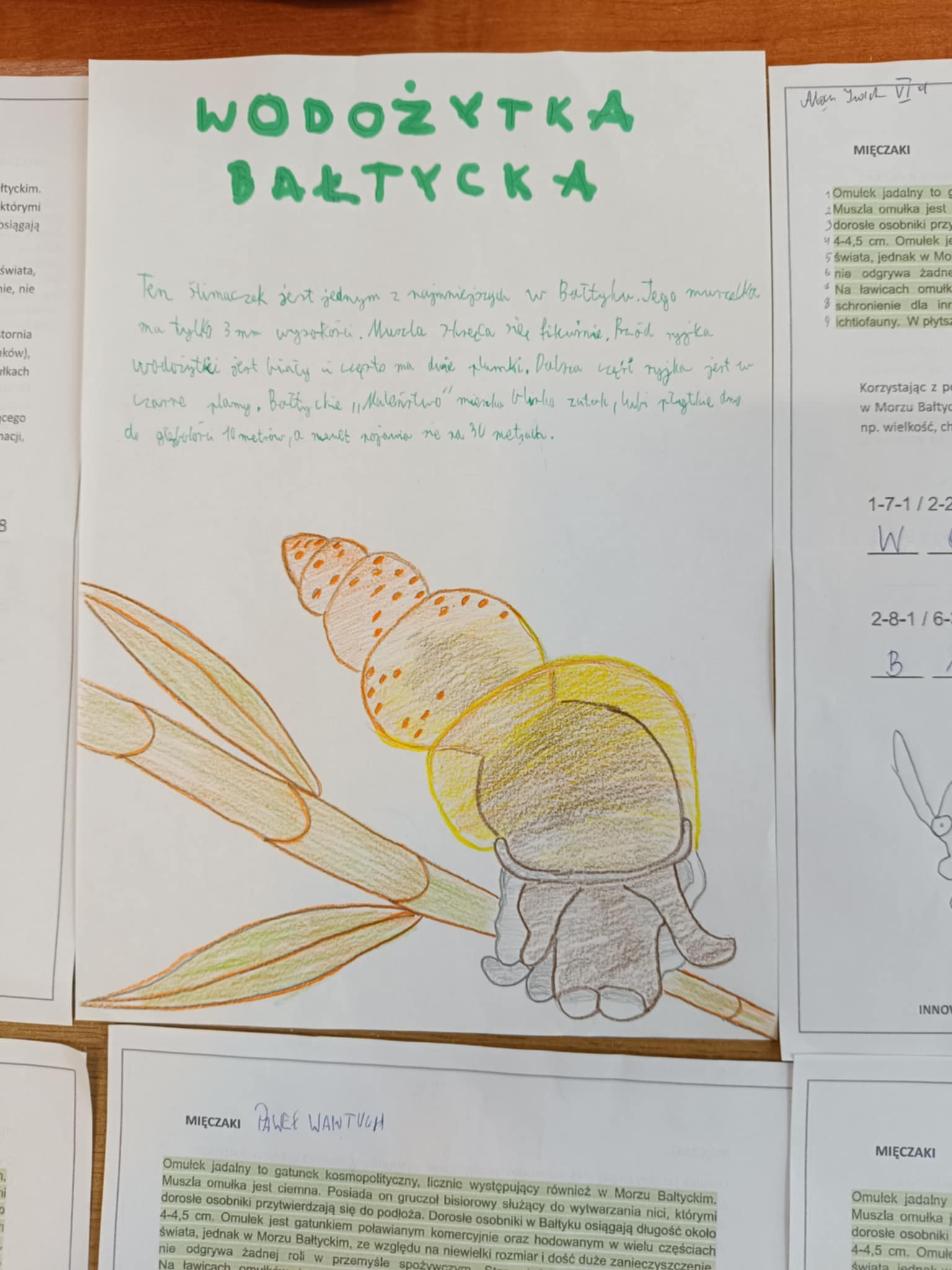 Tym razem szóstoklasistom przyszło się zmierzyć z prawdziwym szyfrem. Korzystając z tekstu o omułku jadalnym należało złamać go. Rozwiązaniem okazała się nazwa organizmu żyjącego w Morzu Bałtyckim czyli – Wodożytki bałtyckiej (maleńkiego ślimaczka). Następnie uczniowie musieli wyszukać informacje na jego temat, naszkicować i krótko opisać np. wielkość, charakterystyczne cechy budowy, występowanie. To była niezła zabawa, niektórzy pierwszy raz w życiu łamali szyfr. Gratulujemy każdemu, komu się to udało!