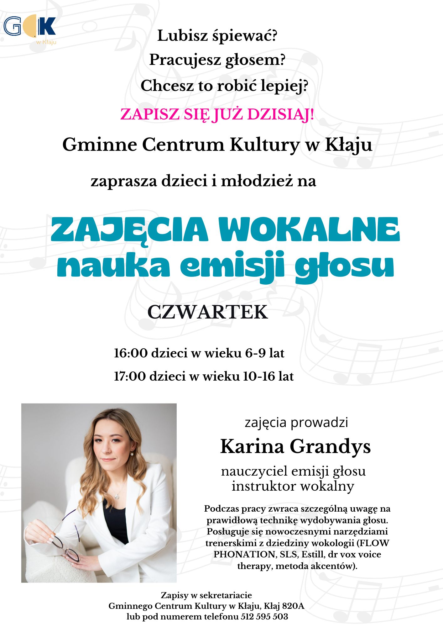 Gminne Centrum Kultury w Kłaju – zajęcia wokalne