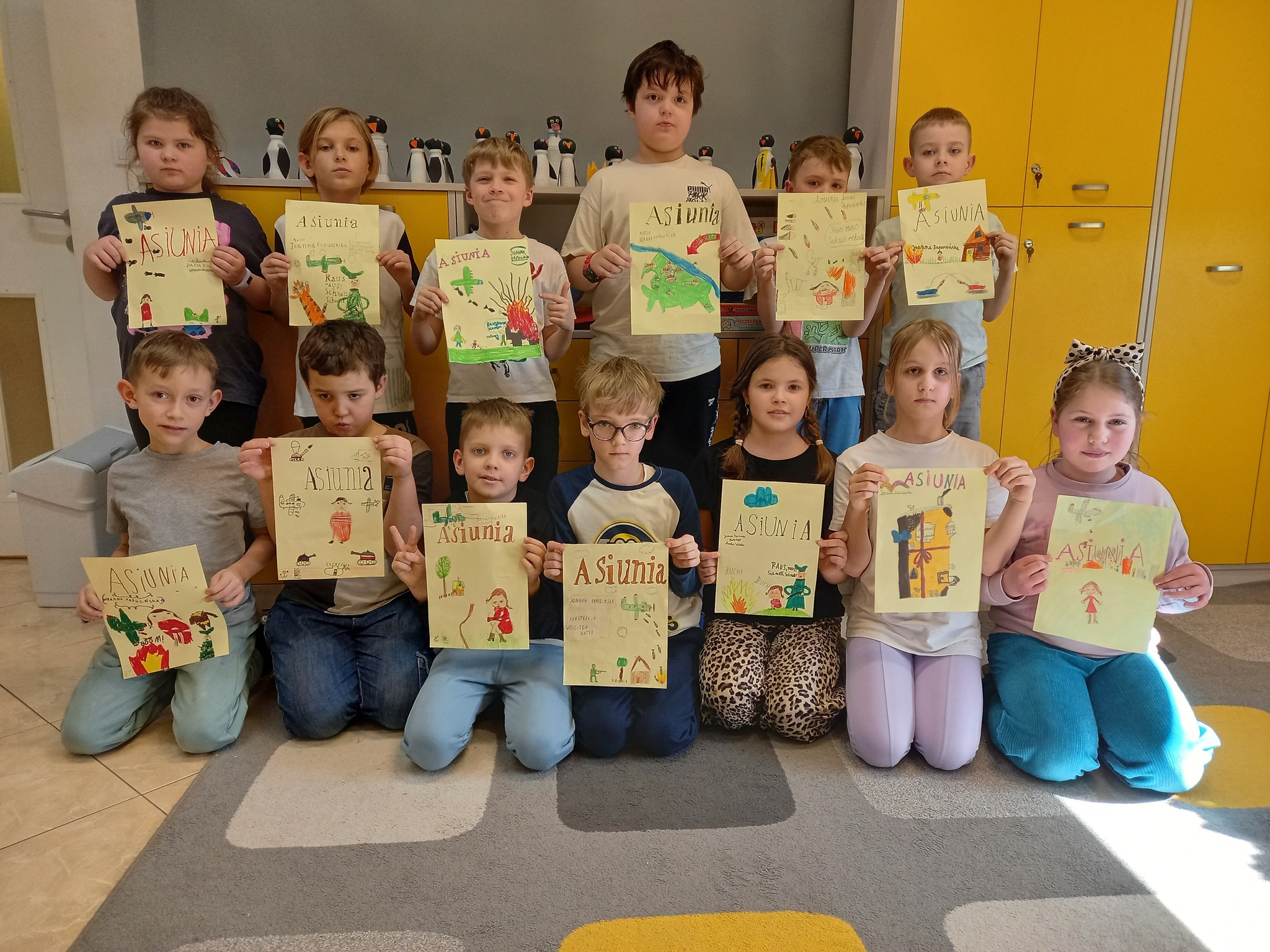 Uczniowie klasy 2 a zrealizowali II moduł projektu Czytam z klasą. Motywem przewodnim tego modułu był smutek i złość. Drugoklasiści przeczytali książkę J.Papuzińskiej pt. “Asiunia” i zmierzyli się z bardzo trudnym tematem jakim jest wojna, szczególnie koncentrując się na losie dzieci w czasie konfliktów zbrojnych. W ramach projektu: – Uzupełniliśmy lekturniki równocześnie porównując życie dzieci w czasie wojny z życiem dzieci współcześnie. – W grupach stworzyliśmy plakaty ilustrujące wędrówkę Asiuni po obcych domach, co pozwoliło lepiej zrozumieć jej przeżycia. – Zaprojektowaliśmy okładkę książki, zadanie to rozwijało naszą kreatywność i umiejętności artystyczne. – Poznaliśmy również kluczowe informacje na temat Powstania Warszawskiego, pomogło nam to zrozumieć motywacje braci Asiuni do dołączenia do walki. – Na koniec sprawdziliśmy naszą znajomość lektury, korzystając z koła fortuny, co okazało się doskonałym sposobem na utrwalenie wiedzy. Te wszystkie aktywności wzbogaciły nasze zrozumienie książki i tematów, które porusza. Lektura “Asiunia” wywołała u uczniów silne emocje, takie jak smutek i złość, związane z wojenną rzeczywistością. W związku z tym rozmawialiśmy na temat tych uczuć oraz przyczyn, które je wywołują. Wspólnie stworzyliśmy “Recepty na smutek i złość”, co pomogło nam znaleźć sposoby radzenia sobie z tymi emocjami. Uzupełniliśmy także nasze Drzewo emocji o nowe liście, na których zapisaliśmy, co nas smuci i złości. Z niecierpliwością czekamy na III moduł, który będzie dotyczył odwagi i strachu oraz na spotkanie z Karolcią, bohaterką książki M. Kruger. To z pewnością będzie kolejna fascynująca przygoda!