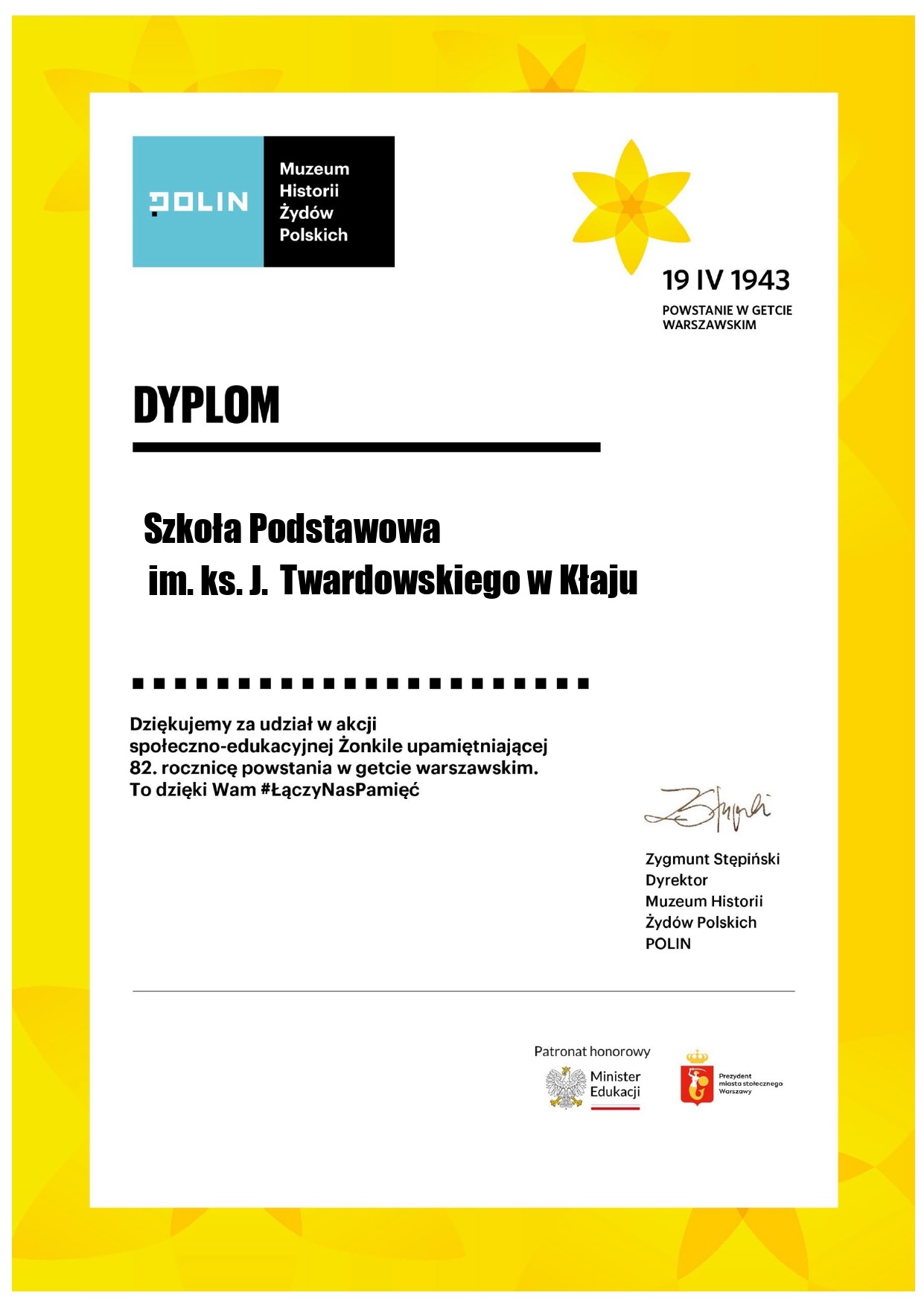 14 kwietnia uczniowie naszej szkoły dołączyli do ogólnopolskiej akcji społeczno-edukacyjnej ŻONKILE organizowanej przez Muzeum Polin.