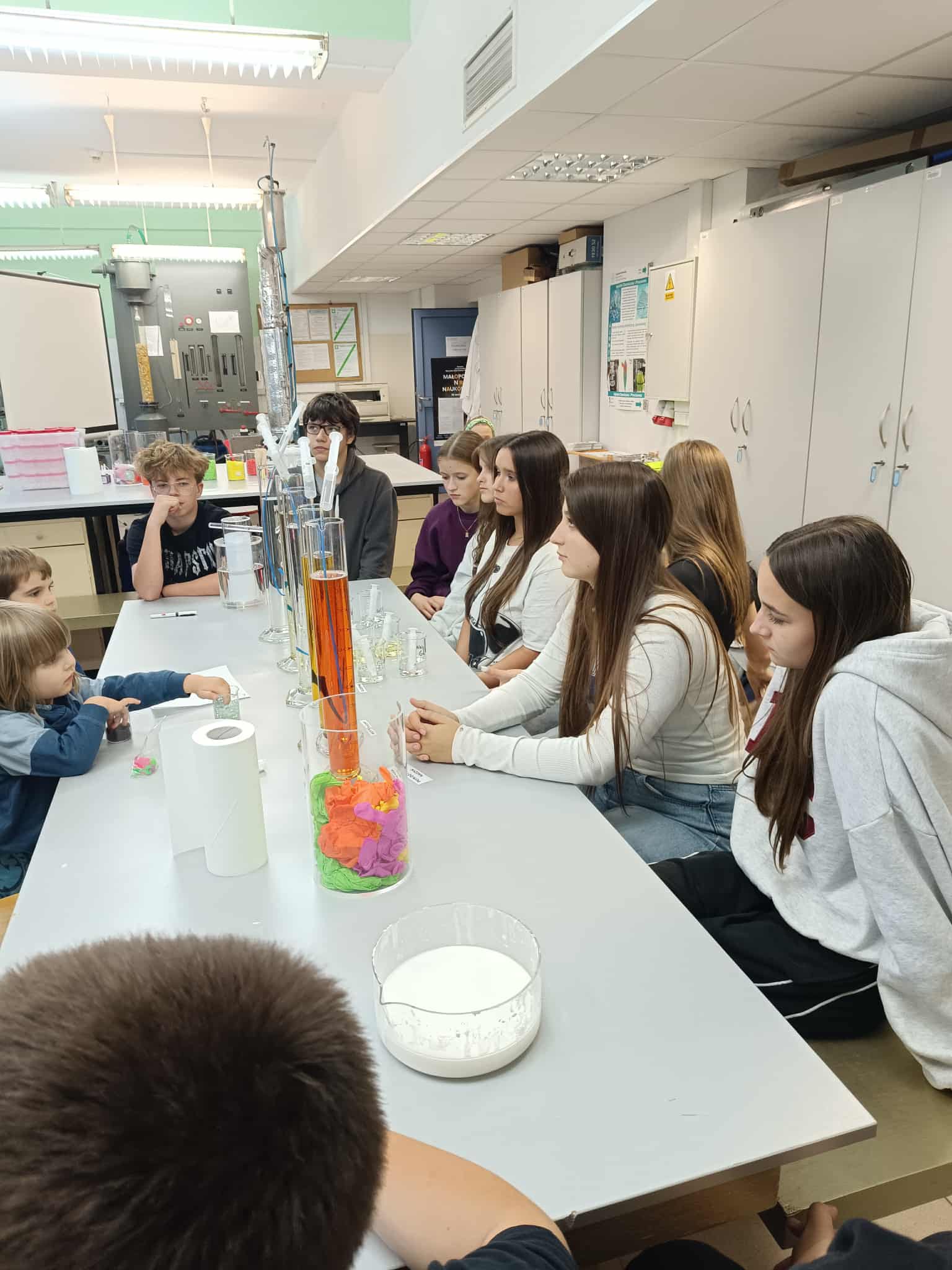 Noc Naukowców 2025 już za nami… Uczniowie klas 7-8 jak co roku mieli okazję wziąć udział w Małopolskiej Nocy Naukowców. Na Politechnice Krakowskiej uczestniczyli w warsztatach „Wszystko płynie, czyli czym jest lepkość?” gdzie zapoznali się z zagadnieniami związanymi z wpływem lepkości na przepływ jednej fazy i układu wielofazowego, natomiast w ramach „ Wielkiej ekspansji – spienianie polireutanów” uczestniczyli w pokazie związanym z otrzymywaniem materiałów piankowych. Było niezwykle „kolorowo i chemicznie”! Następnie udali się do Muzeum Archeologicznego! Warsztaty „Ślady na kościach – tafonomia jako klucz do zrozumienia świata neandertalczyków” wprowadziły ich w podstawy tafonomii – nauki badającej ślady pozostawione na kościach przez człowieka, drapieżniki i procesy naturalne. Wtórne wykorzystywanie surowców może natomiast wydawać modą i potrzebą naszych czasów. Ale nic bardziej mylnego! Od samego początku cywilizacji nasi przodkowie ponownie uzyskiwali surowce z niepotrzebnych i zniszczonych przedmiotów. Podczas zajęć „Prehistoryczny recykling” uczniowie poznali sposoby recyklingu w prehistorii, zwłaszcza w epoce brązu. Za rok znów się wybierzemy !!!