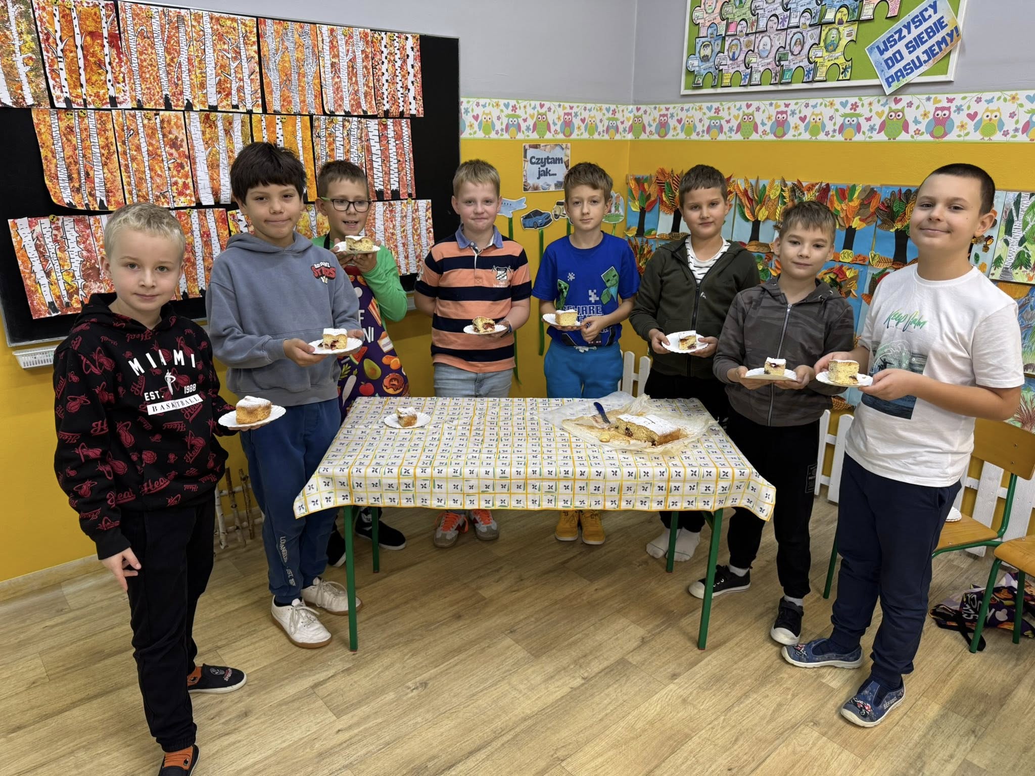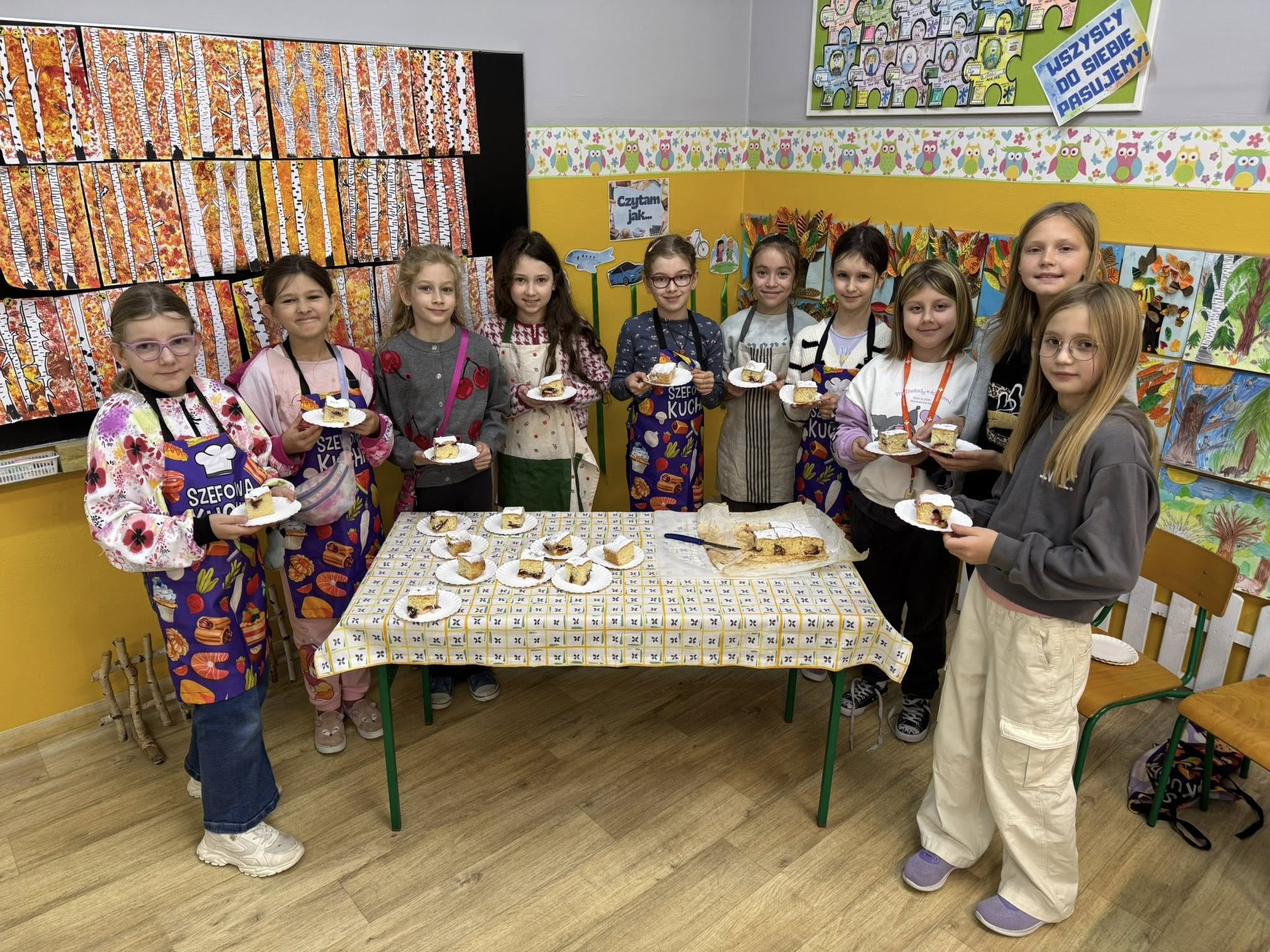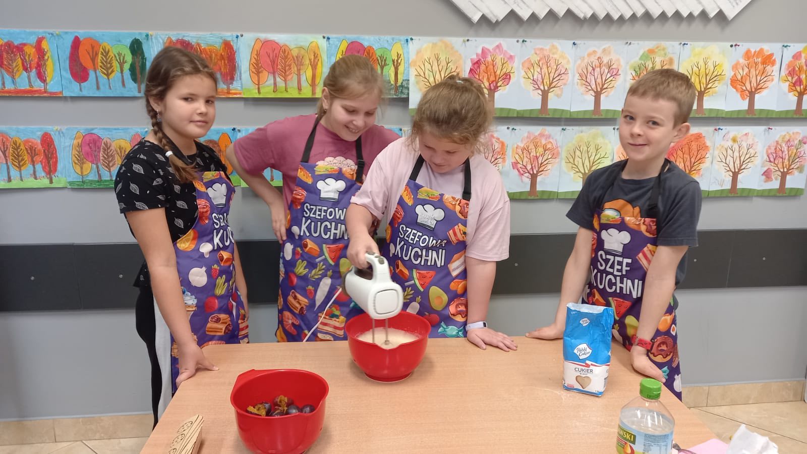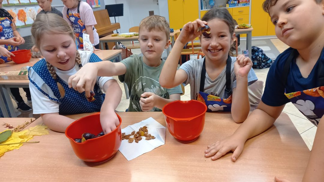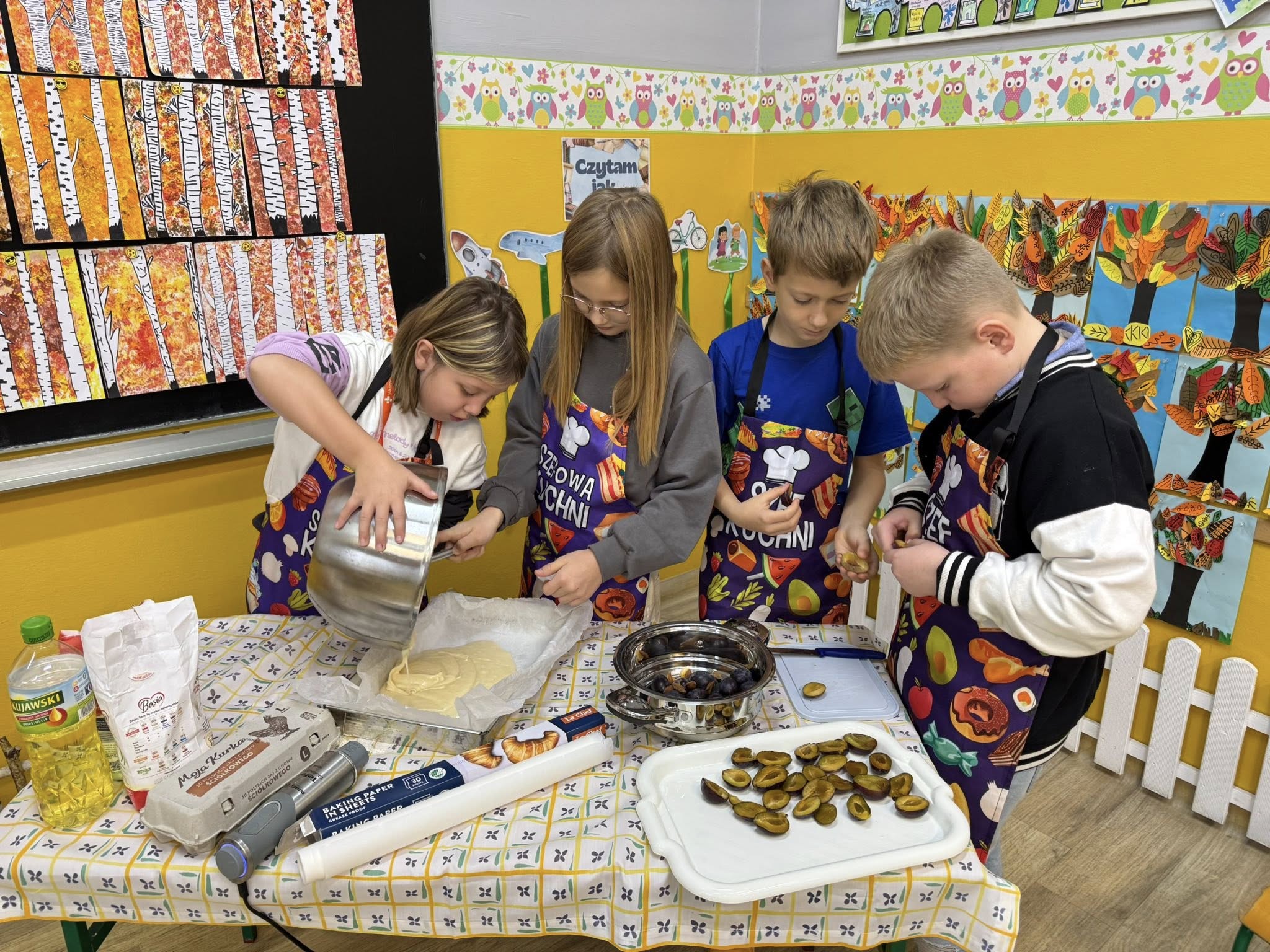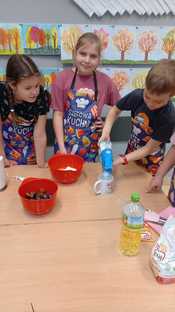 Od samego rana w klasie unosił się cudowny zapach ciasta i świeżych śliwek, a dzieci z ogromnym entuzjazmem odmierzały składniki, mieszały ciasto i pilnowały, by wszystko wyszło idealnie. Było przy tym mnóstwo śmiechu, wspólnej pracy i dobrej zabawy.