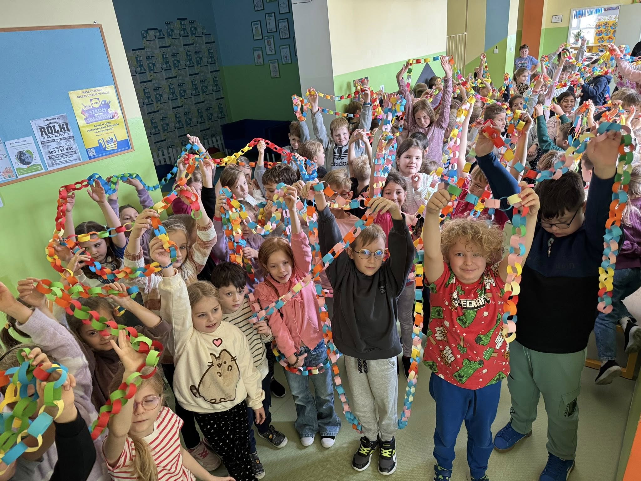 – Łańcuch Życzliwości: Choć wymagało to cierpliwości i współpracy, udało nam się stworzyć długi, papierowy łańcuch! Splecenie się nim symbolicznie połączyło nas w jeden, wielki Łańcuch Życzliwości, pokazując, jak silni jesteśmy razem.