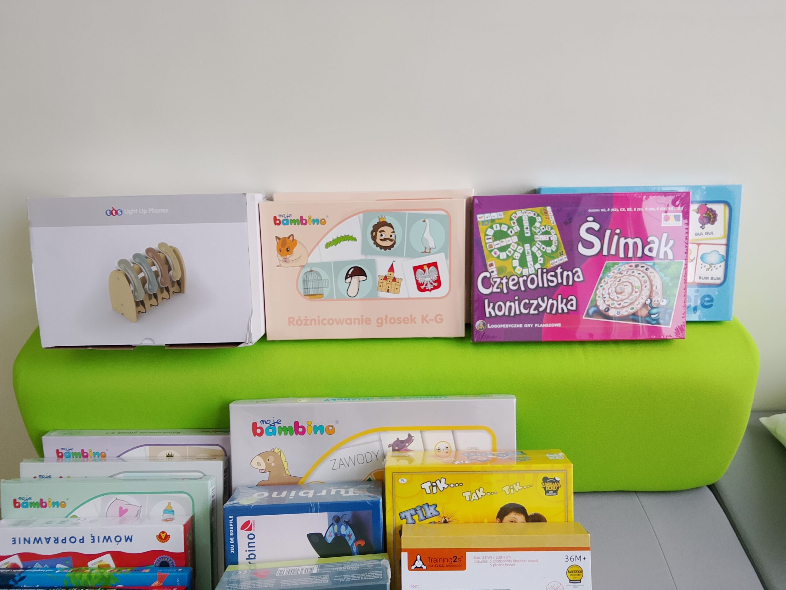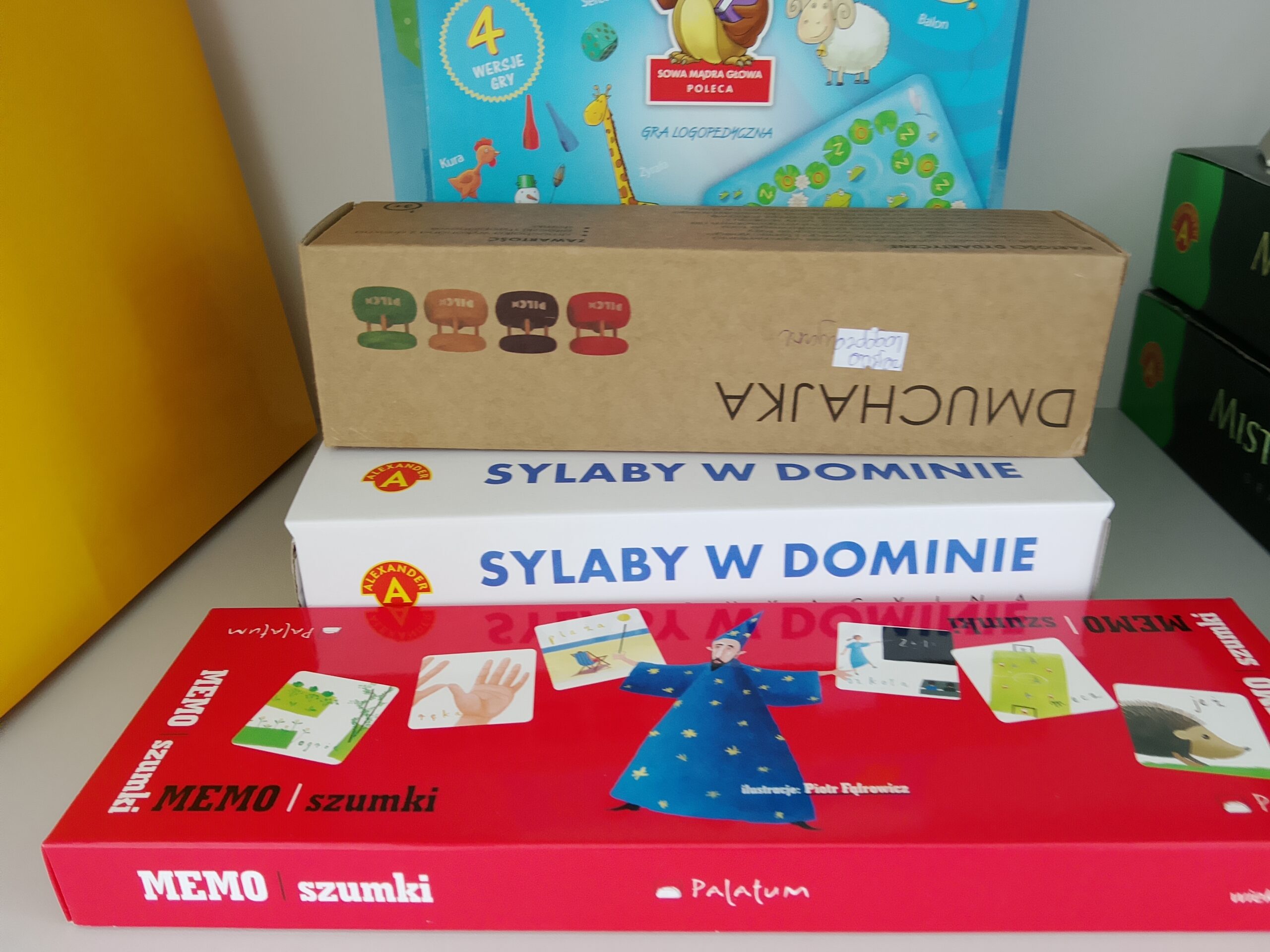 Dużym powodzeniem cieszą się gry m.in. planszowe, które urozmaiciły naszą bazę ćwiczeń. Dzięki nim uczniowie uczestniczący w zajęciach logopedycznych szybciej automatyzują głoski w mowie spontanicznej, różnicują słuch fonemowy. Gry te także uczą relacji społecznych, zobowiązują do przestrzegania określonych zasad oraz wspomagają nabywanie umiejętności zdrowej rywalizacji, rozwijają logiczne myślenie, wymagają poszukiwania najkorzystniejszych rozwiązań.