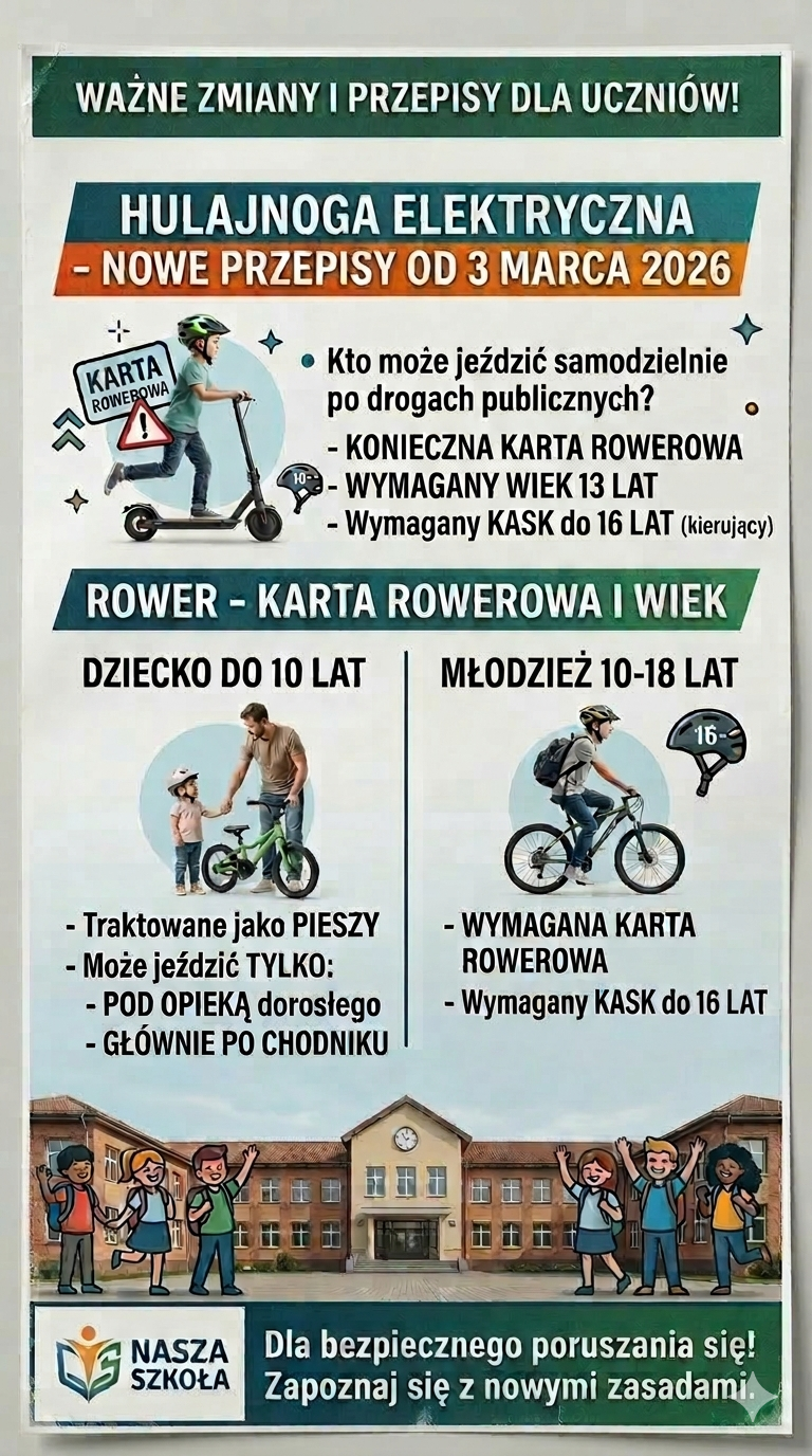 Aktualności Rower i hulajnoga – nowe przepisy SP Kłaj | 19 marca, 2026 AM Rowerem i hulajnogą – bezpiecznie po drogach! Przeczytaj o nowych przepisach!