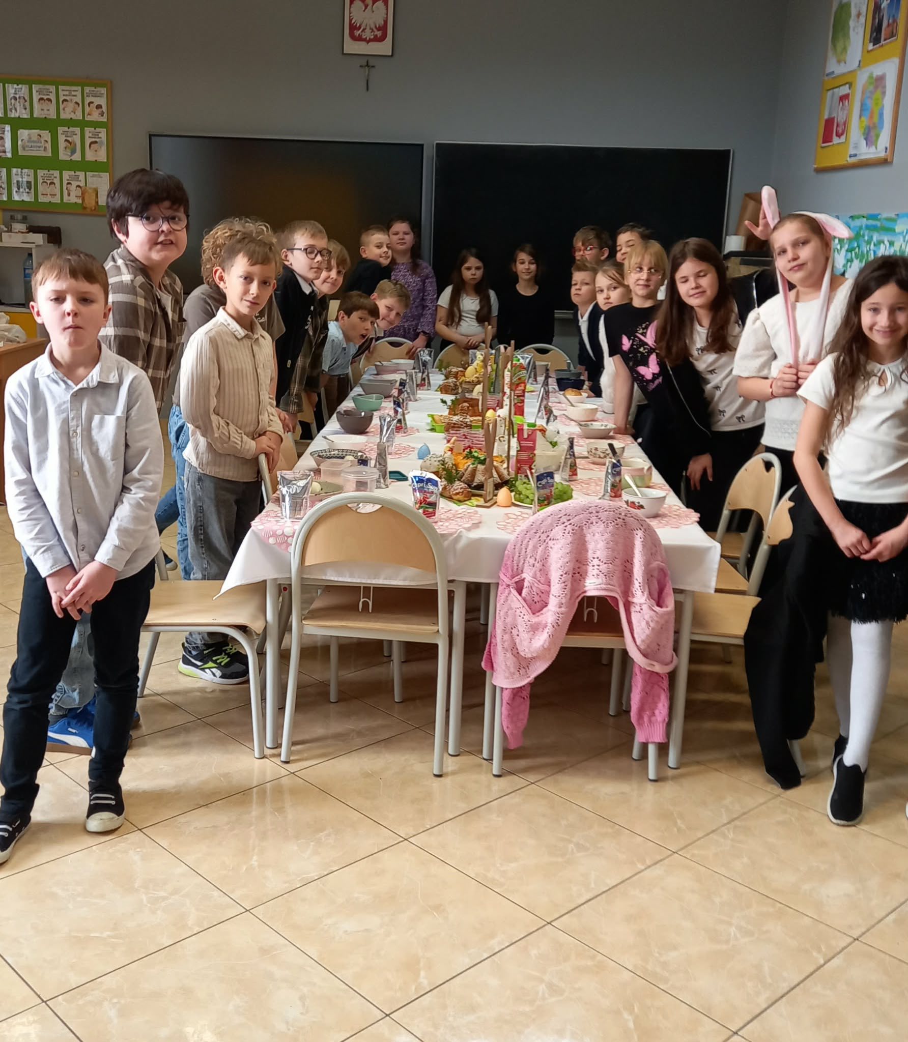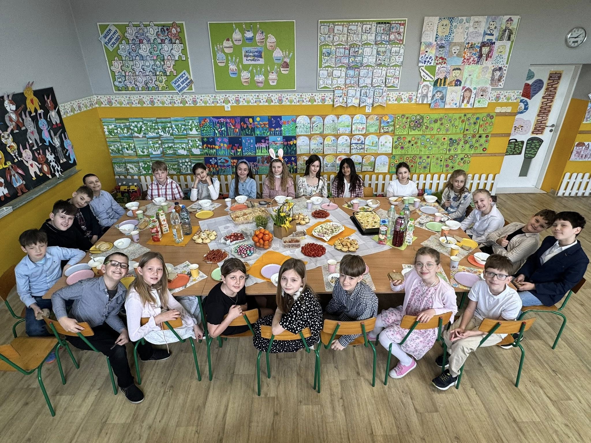 Wielkanocne śniadanie w klasach młodszych – dzisiejszy dzień w młodszych klasach miał naprawdę wyjątkowy klimat! Zamiast codziennego rytmu lekcji, nasze sale wypełniły się aromatem rzeżuchy, domowych wypieków i radosnym śmiechem przy wspólnym stole.