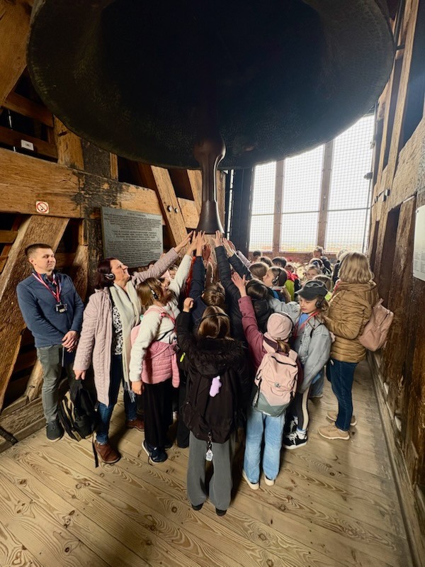 Pierwszym punktem naszego programu był Wawel – symbol narodowego dziedzictwa. Zwiedziliśmy Katedrę Wawelską i poznaliśmy historię koronacji królów Polski oraz zobaczyliśmy miejsca ich pochówku. Szczególne wrażenie zrobił na wszystkich słynny Dzwon Zygmunta, którego potężny dźwięk od wieków towarzyszy najważniejszym wydarzeniom w kraju. Zgodnie z tradycją, stojąc przy dzwonie, wypowiadaliśmy swoje marzenia, wierząc, że mają one szansę się spełnić.